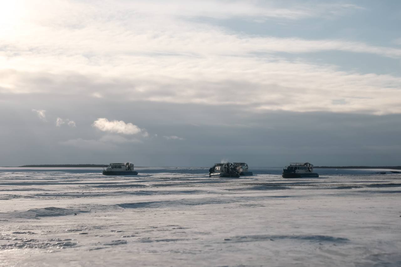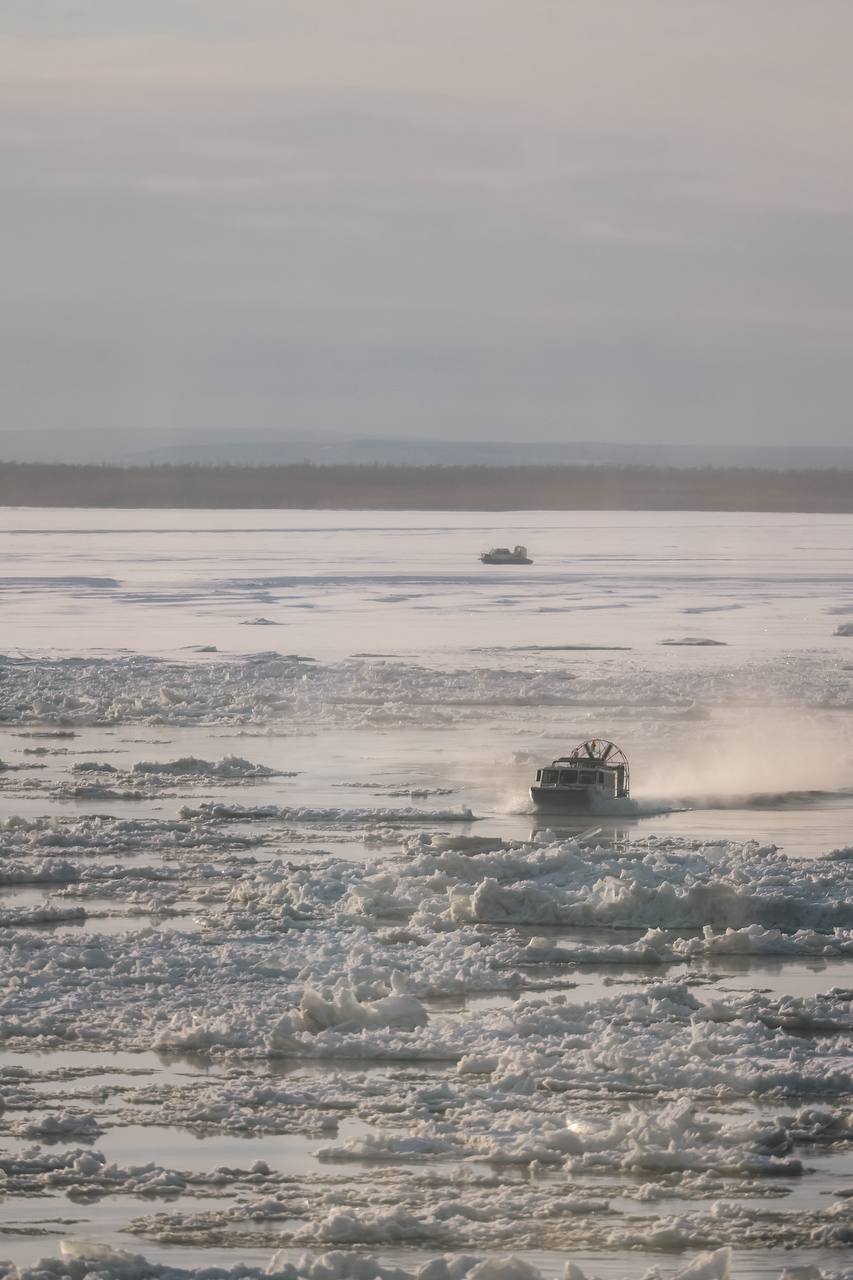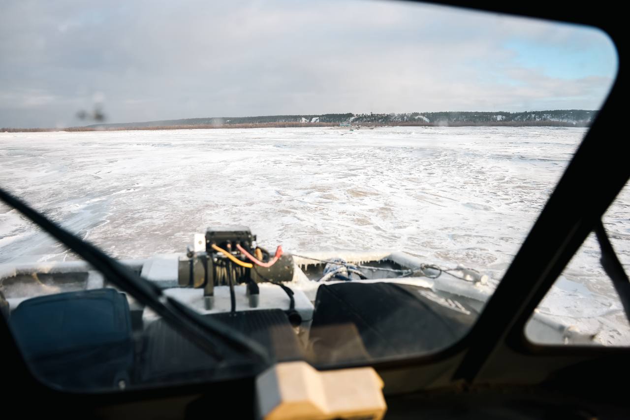 Единственными способами перебраться на другой берег реки Лена в межсезонье остаются воздушные подушки и аэроботы.