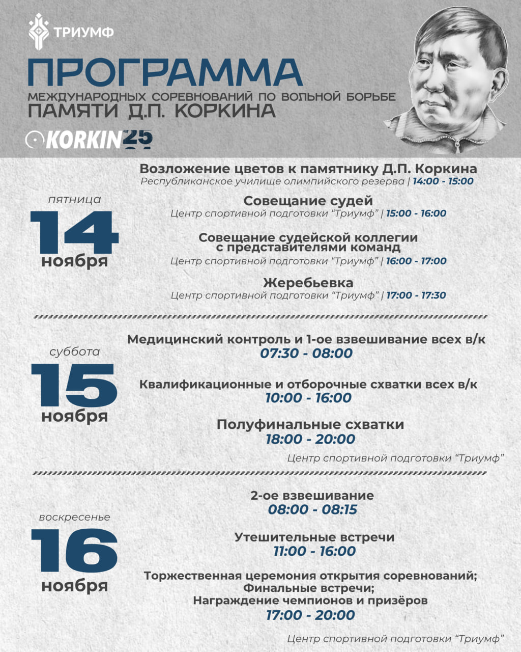 XVI Международный турнир по вольной борьбе среди мужчин памяти Дмитрия Коркина пройдет 15-16 ноября в Якутске.
