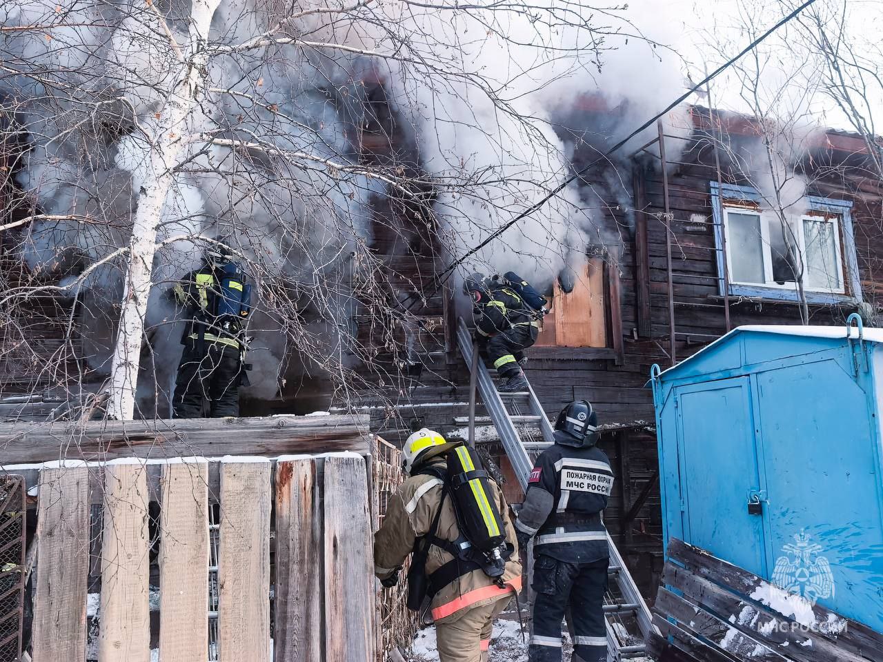 В Якутске огнеборцы МЧС России ликвидируют пожар в двухэтажном жилом доме на улице Халтурина.
