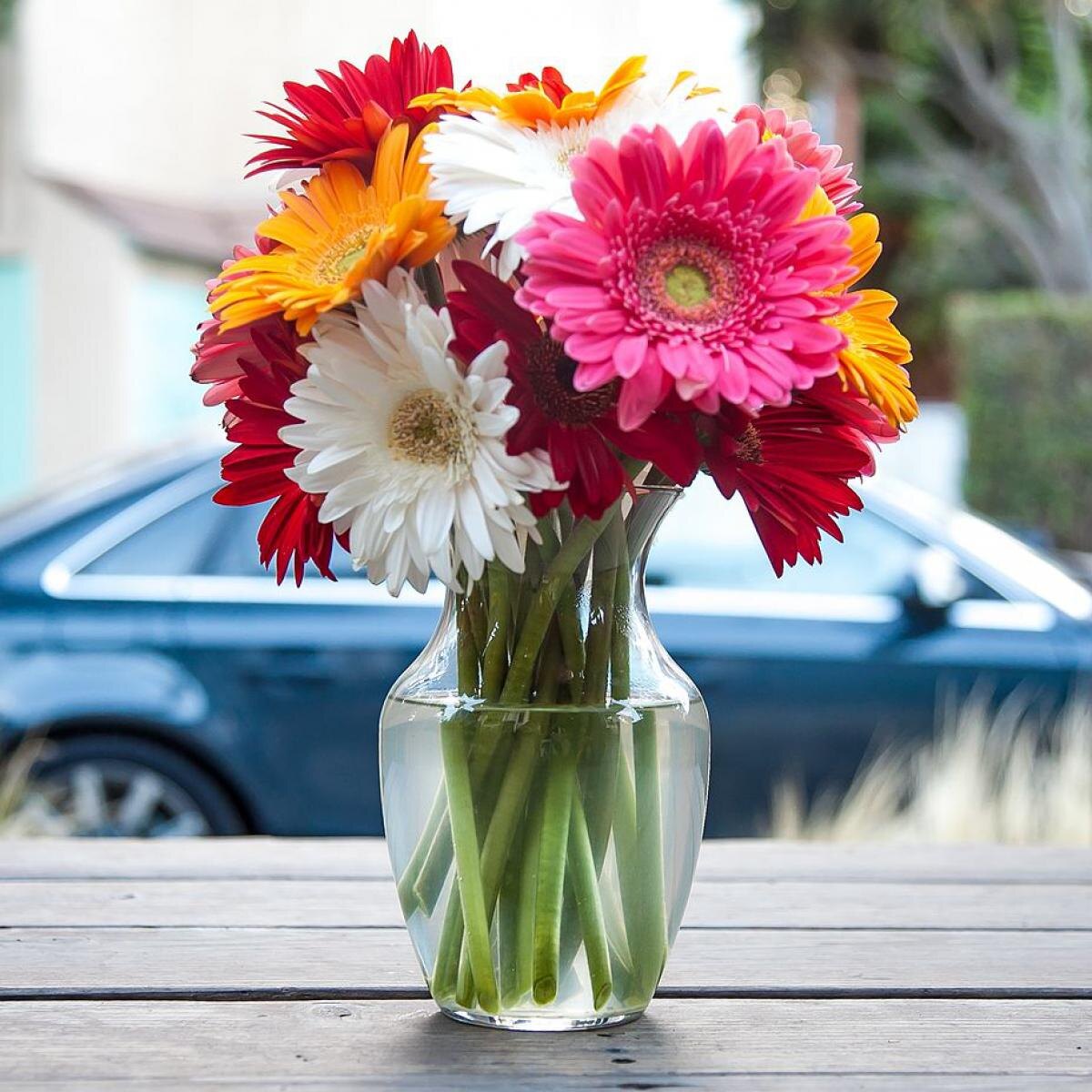 - Герберы: Яркие и жизнерадостные герберы могут процветать в течение двух недель. Умышленное удаление пожелтевших лепестков и частая смена воды помогут им сохранить свою красоту.