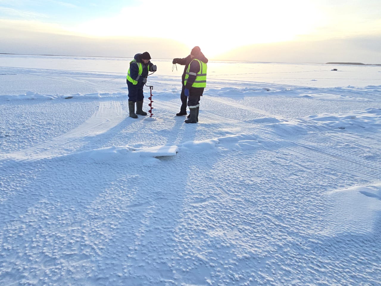 На сегодняшний день на объекте задействовано 17 человек, ведутся работы по устранению торосов ручным способом и намораживанию льда с применением мотопомп. Замеры толщины льда проводятся ежедневно.