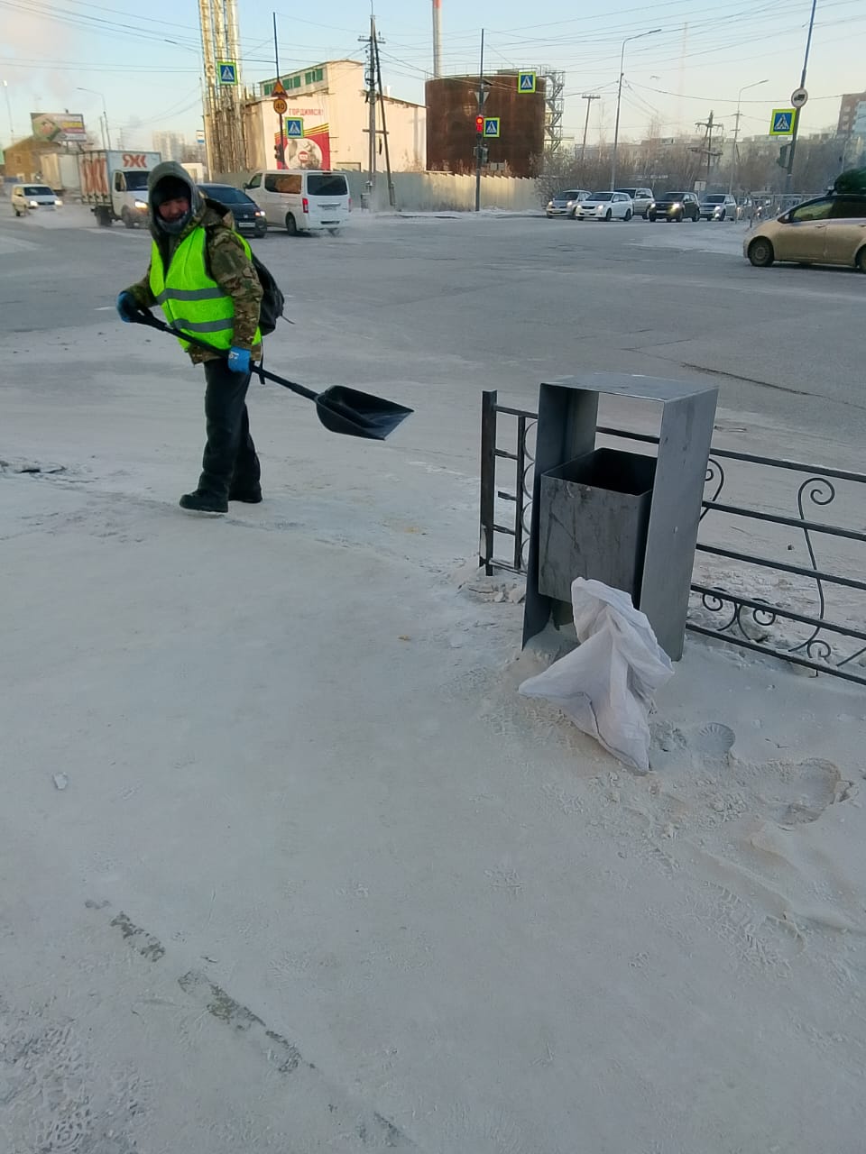 Проведена уборка улиц от мусора, очистка тротуаров от снега, а также провели уборку санитарных точек и урн.#блокЖКХякутска#ЯживуVстроительном