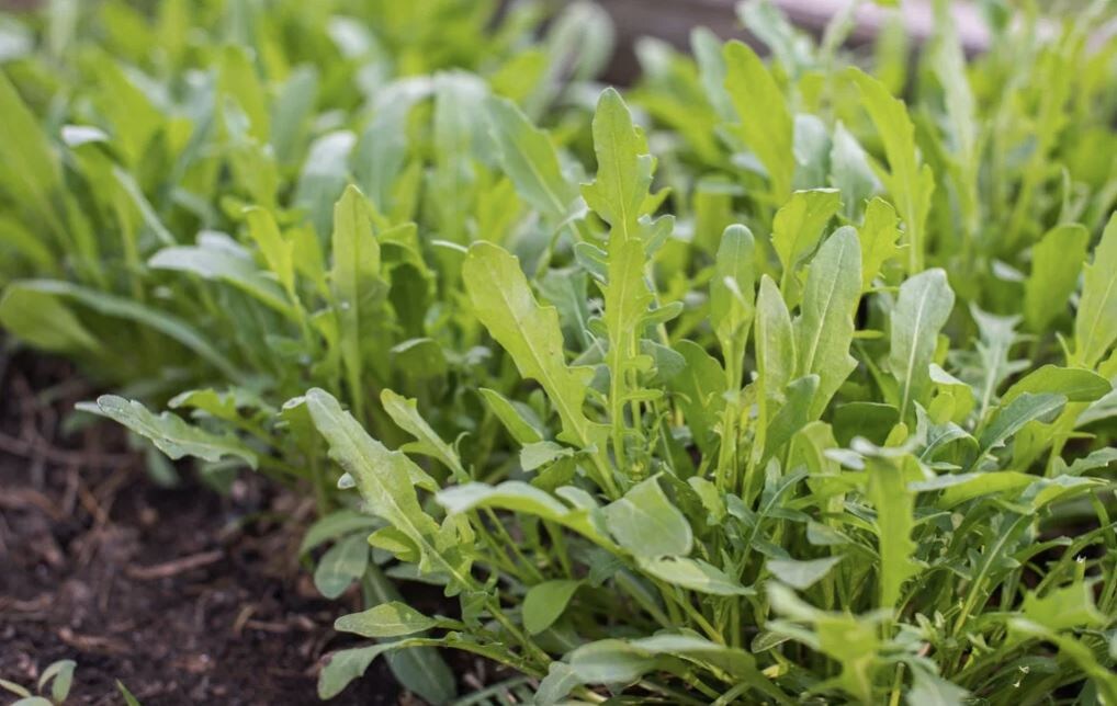 - Руккола: созревает всего за 20-25 дней. Сеять следует густо, на глубину около 1 см. Эта культура предпочитает полутень, иначе может приобрести горький вкус.