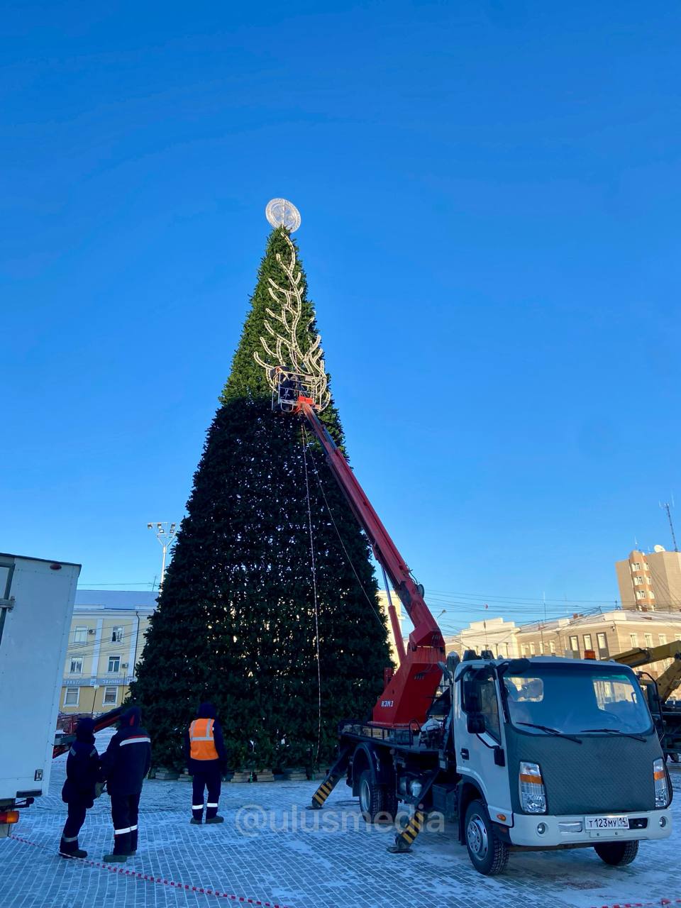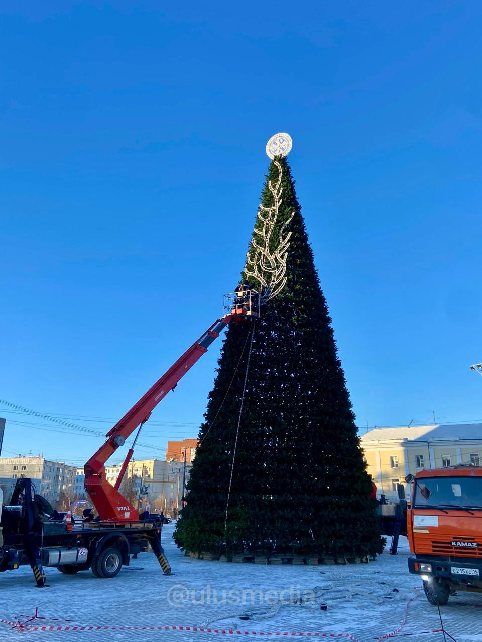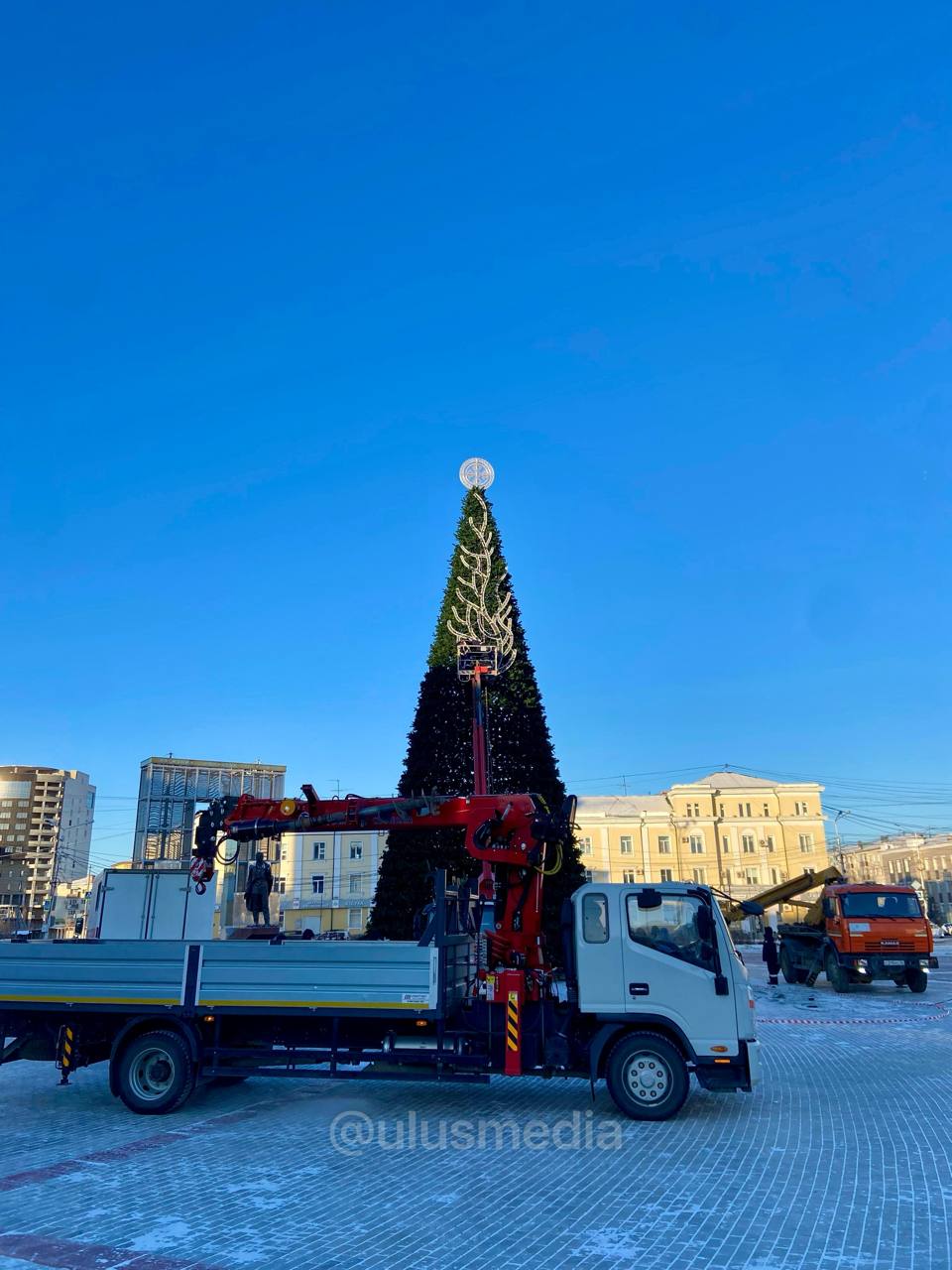 Новогоднюю ёлку на площади Орджоникидзе в Якутске уже полностью установили и начали украшать