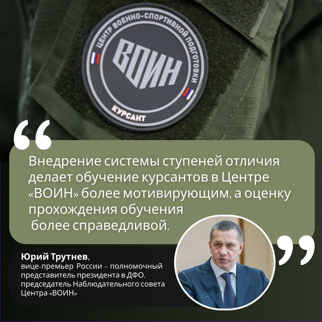 Юных патриотов нужно поощрять, считает полпред ДФО Юрий Трутнев. Для этого он предложил ввести ступени отличия для воспитанников Центра «ВОИН».