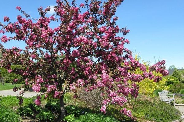 Яблоня отличается среднерослым ростом и округлой, хорошо выглядящей кроной, достигающей высоты 4-5 метров. Ветви отходят почти под прямым углом от ствола и покрыты гладкой корой различных оттенков. Листья яблони средней величины, плотные и глянцевые, что добавляет декоративной ценности растению.
