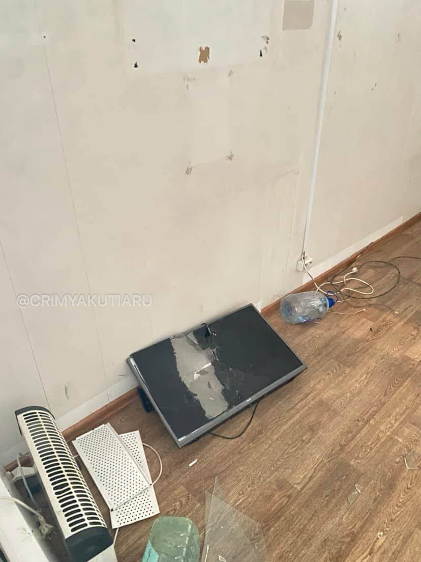 Тгк КримЯкутия сообщает, что ночью неизвестные разнесли теплую остановку Столичный рынок. Пострадало буквально все: стекла, двери, электротабло. Но больше всех досталось автомату с мягкими игрушками.