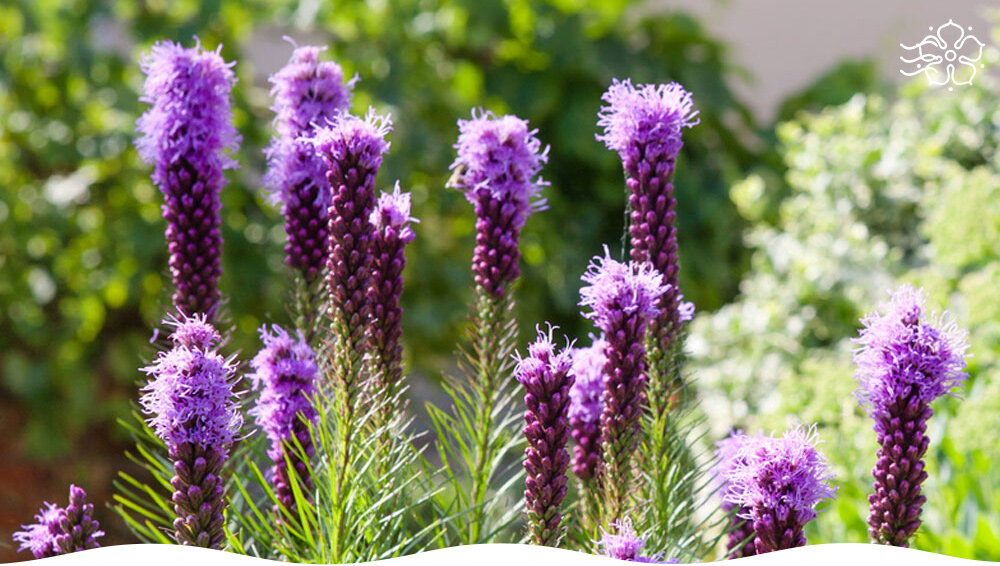 - Лиатрис Горящая звезда: Это уникальное растение, хотя и не слишком распространенное, поразит своим обликом. С июня по сентябрь оно радует глаз ярко-фиолетовыми соцветиями, которые остаются устойчивыми под дождем и ветром. Листья зимой меняют цвет на красный и коричневый, создавая контраст с белоснежной мебелью природы.
