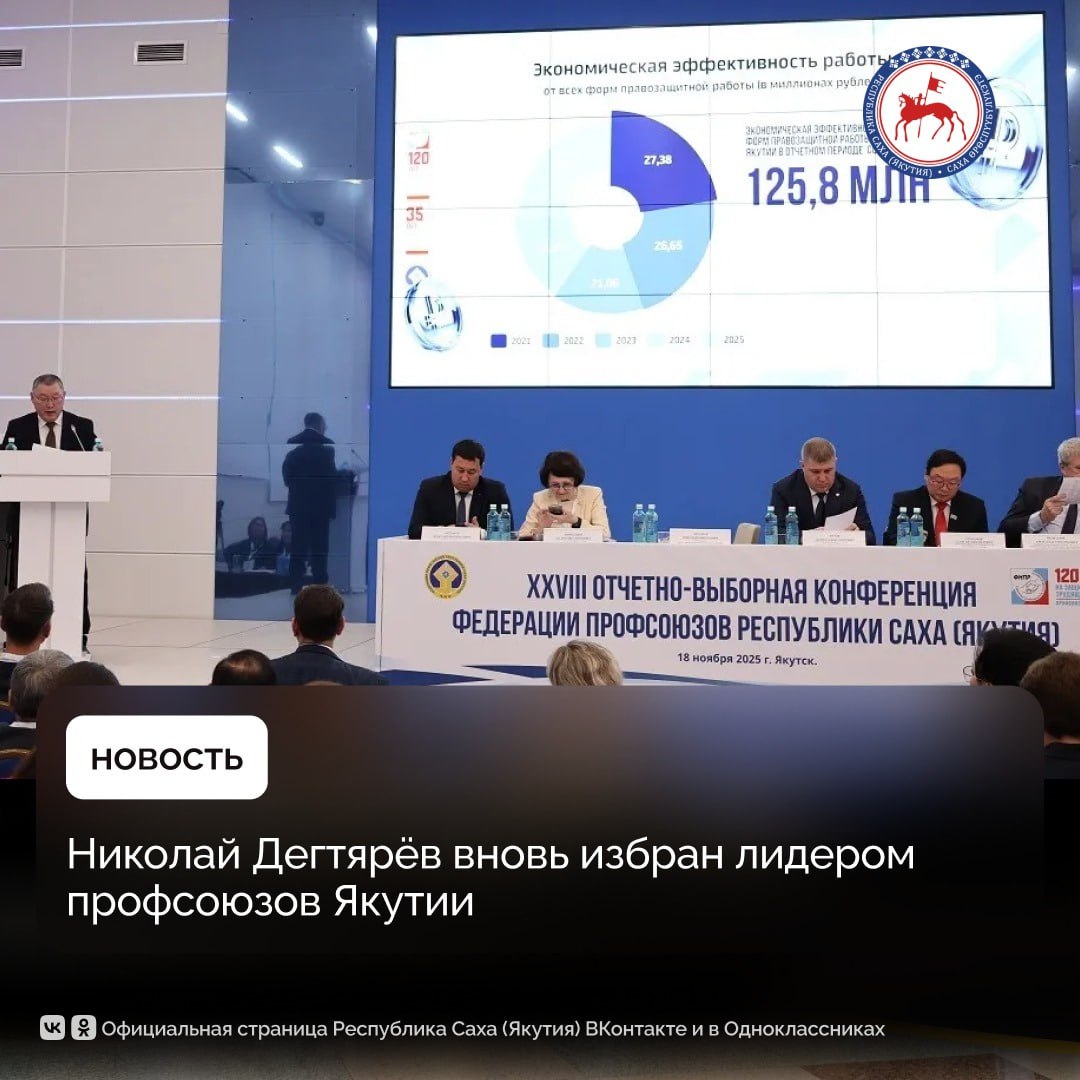 В Якутске состоялась XXVIII Отчётно-выборная конференция Федерации профсоюзов Республики Саха (Якутия) по итогам деятельности организации с 2021 по 2025 год.