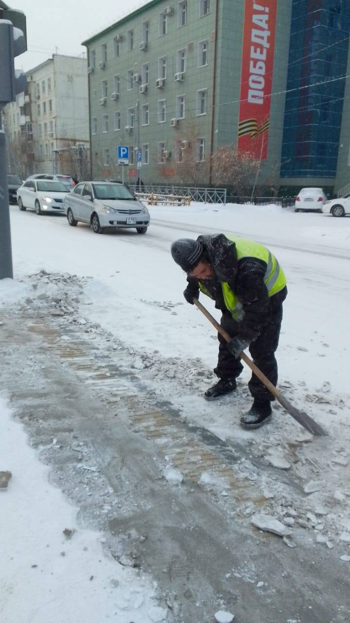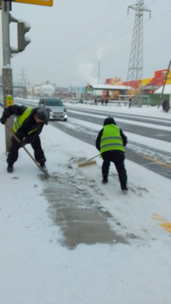 Уборка от мусора улиц и скверов, очистка от снега уличных переходов, мостов и пешеходных переходов силами муниципальных дворников Промышленного округа