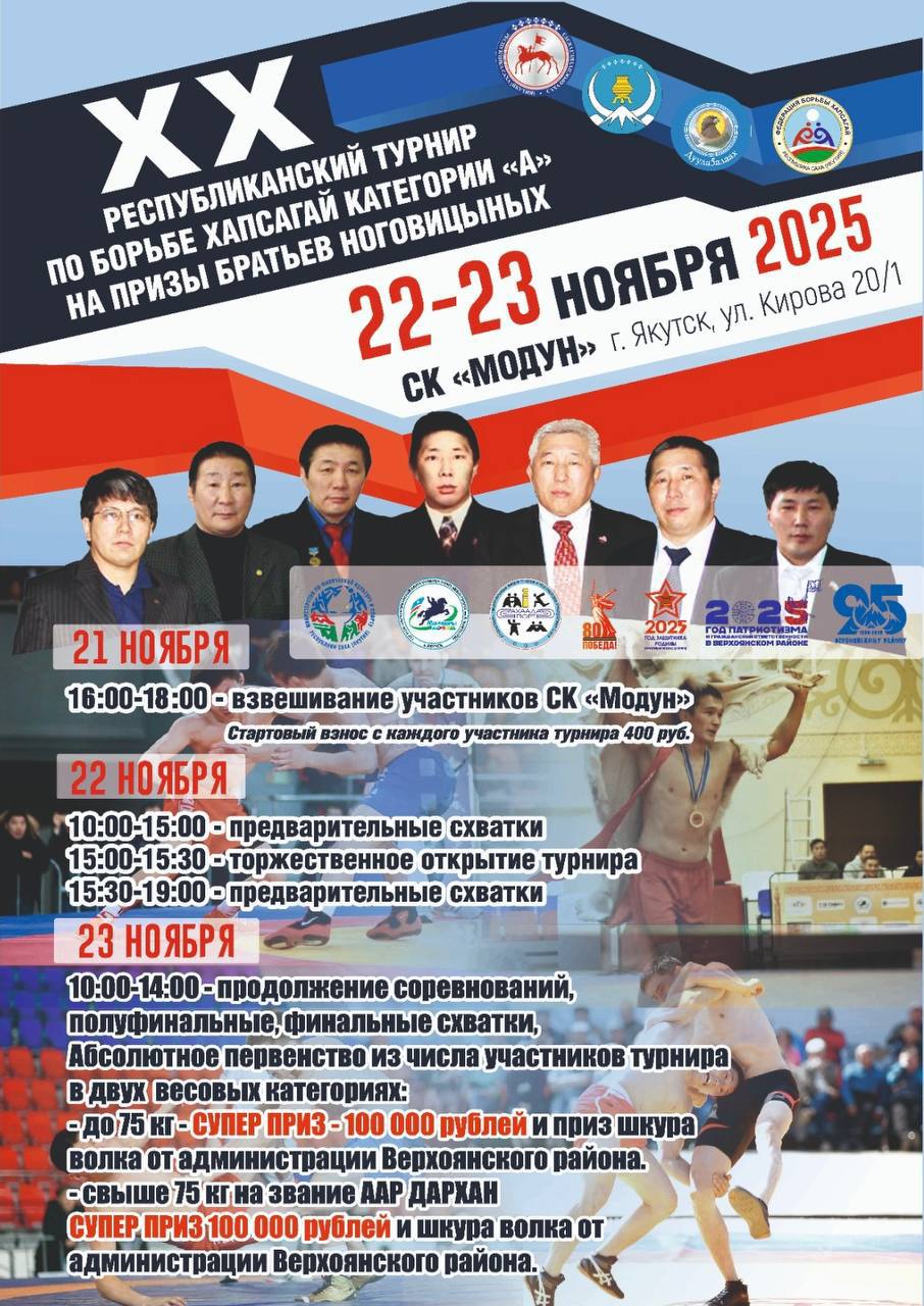 Отдельно пройдут два первенства в абсолютной весовой категории — до 75 кг и свыше 75 кг. Обладатели звания Аар Дархан получат по 100 000 и традиционную шкуру волка от администрации Верхоянского района
