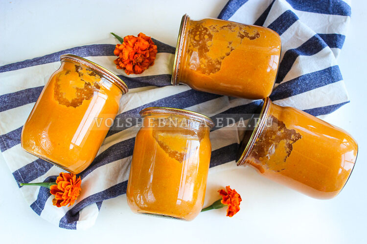 Вернув пюре обратно в чашу, добавляем томатную пасту и перец. Снова включаем режим «Тушение» на час, а за 15 минут до завершения добавляем сахар и уксус. Важно правильно отрегулировать вкус, возможно, потребуется немного соли. Горячую смесь разливают по стерилизованным банкам и закрывают крышками. После охлаждения банки переносят на хранение в погреб.
