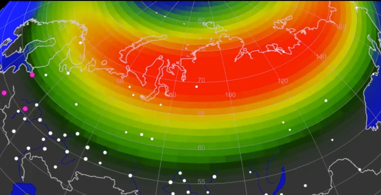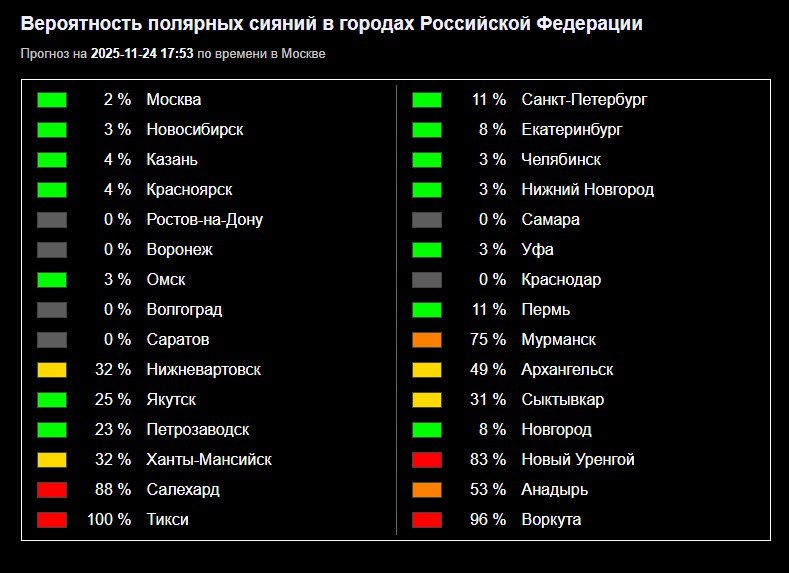 Зоны полярных сияний спустилась до широт примерно 55 градусов (Москва, Казань, Нижний Новгород).
