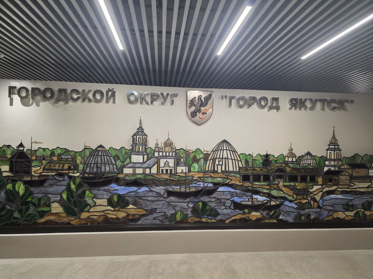 Фотофакт: в холле мэрии Якутска завершили установку панно "Старый город" из кованого железа и оргстекла.