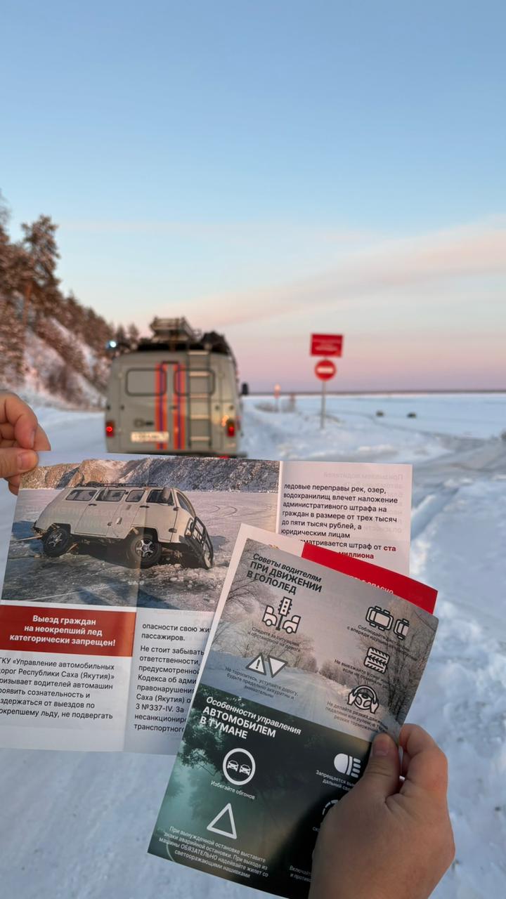 Управление автомобильных дорог Якутии напоминает, что за несанкционированный выезд на лёд предусмотрена административная ответственность по статье 9.10 КоАП РС(Я) с наложением штрафа: на граждан в размере до 5 тысяч рублей, на должностных лиц — до 50 тысяч рублей, на юридических лиц — до 1 миллиона рублей.