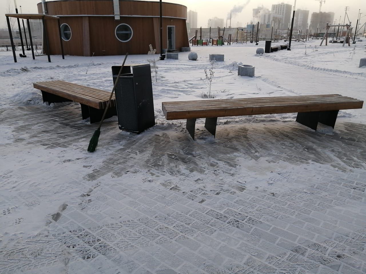 По набережной Сайсарского озера и на Площади Матери порядок поддерживают наши муниципальные дворники.