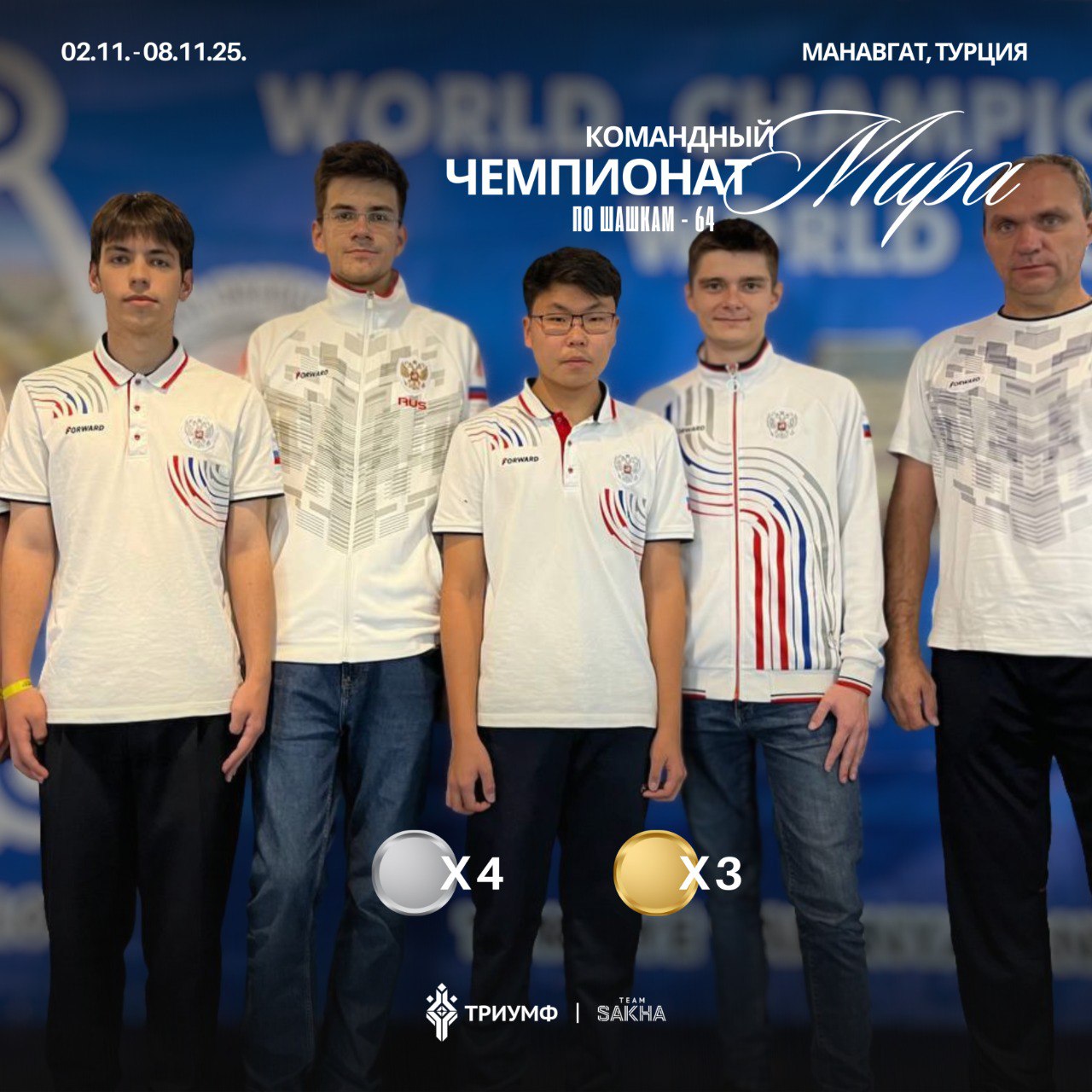 3 золота и 4 серебра в командном чемпионате мира по шашкам-64!
