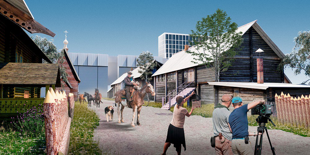 «В комплексе площадью 26 тысяч м архитекторы собрали весь цикл кинопроизводства под одной крышей: от павильонов и деревни декораций, где зоны уличной съемки перетекают в общественное пространство, до рабочих помещений команд и постпродакшна. Главный технологический акцент — XR-сцена с охватом 360°, позволяющая снимать любые локации независимо от погоды. Благодаря этому снимать фильмы в Якутии станет возможным круглый год, вне зависимости от сезона.