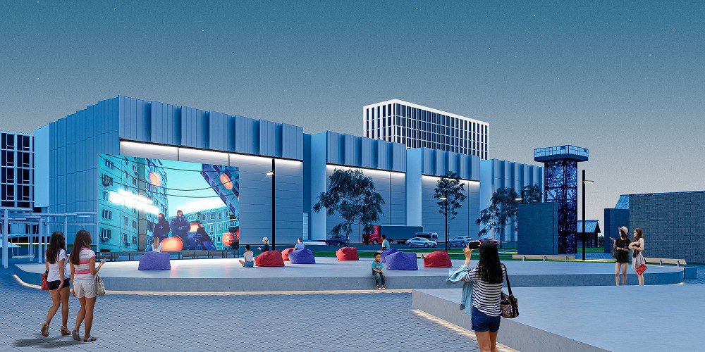Архитектурный образ продуман до мелочей и основан на узнаваемых визуальных кодах: фасады отсылают к северному сиянию и движению киноплёнки, формируя живой световой градиент и ритмичный орнамент. Так будущий павильон превращается не только в производственную площадку, но и символ креативного развития», - поясняет бюро.