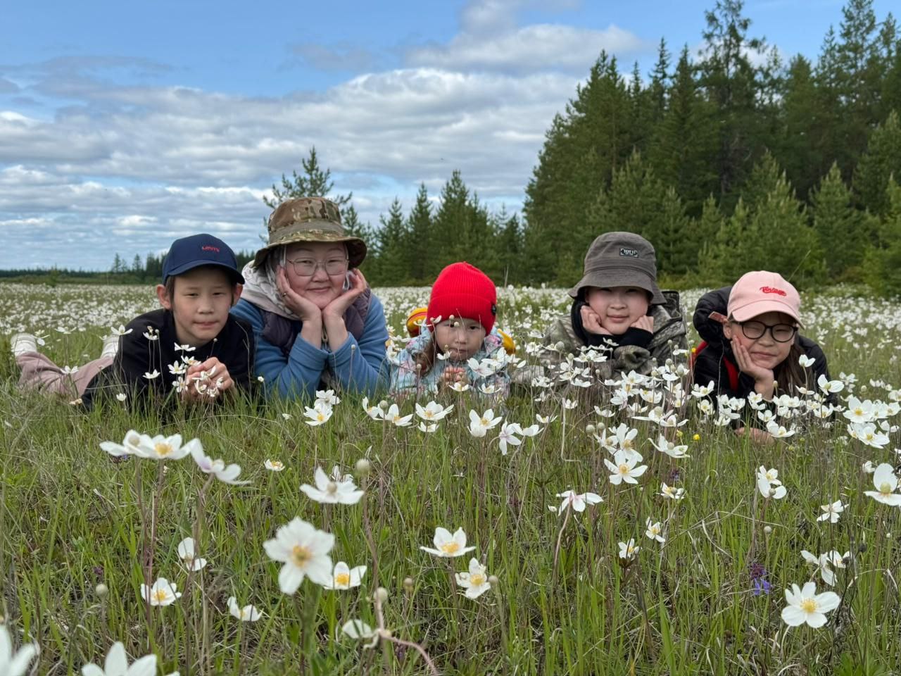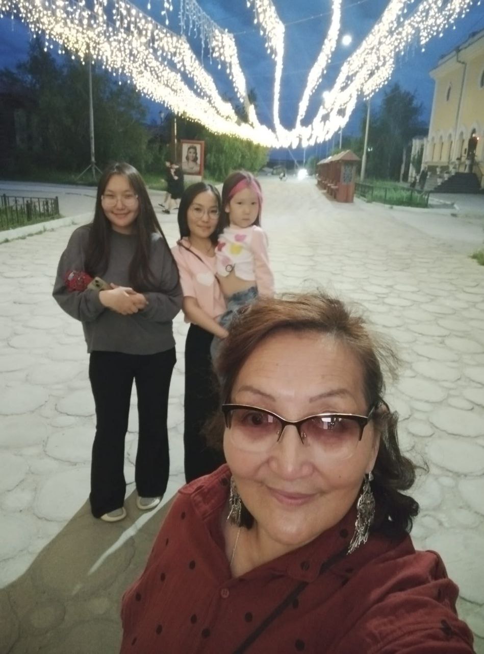 Тамара Ксенофонтова, председатель УИК 427, завхоз детского сада "Сарыал" села Хатыы, с дочерьми.