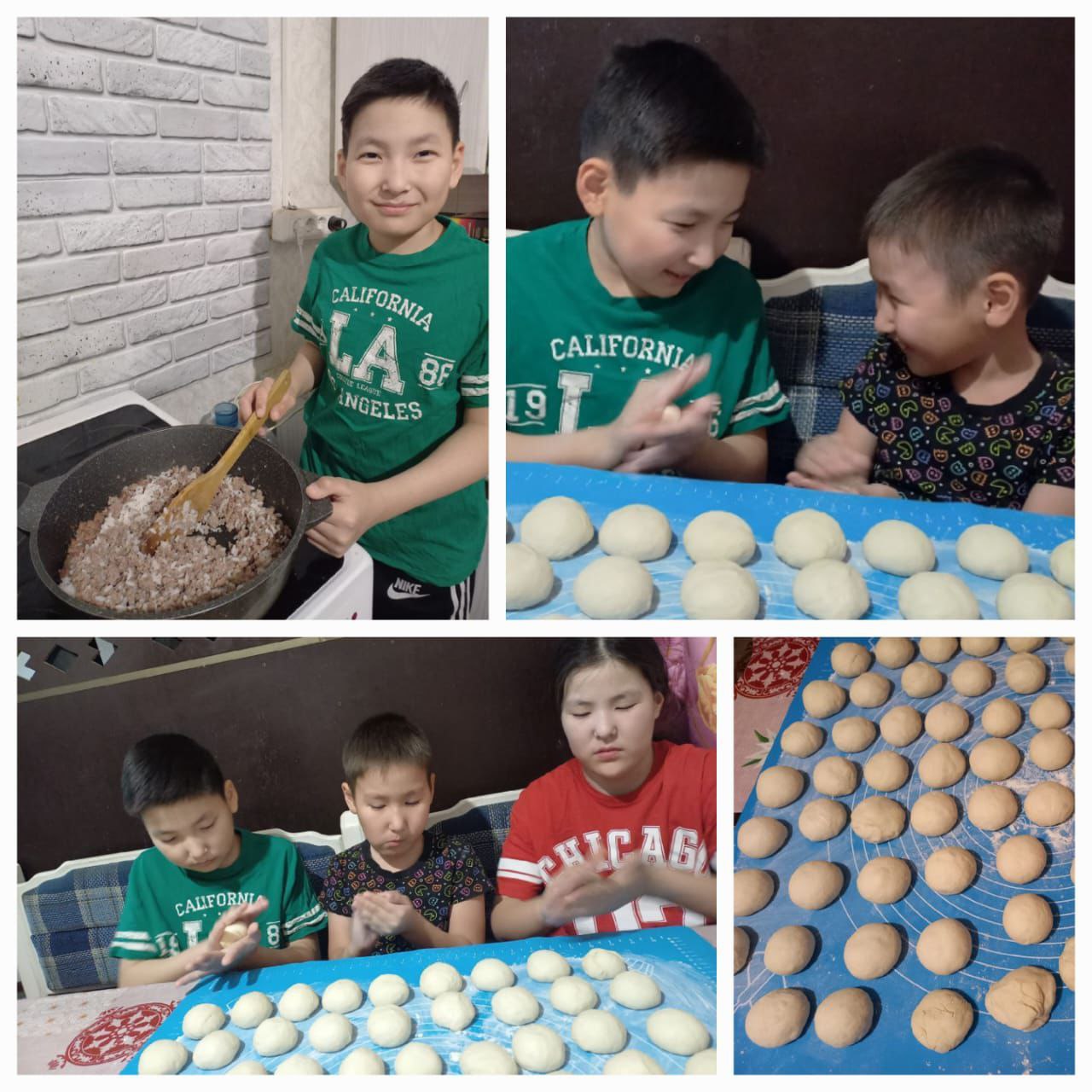Дети дружно помогают маме во всех домашних хлопотах. А пирожки готовить - все в первых рядах!
