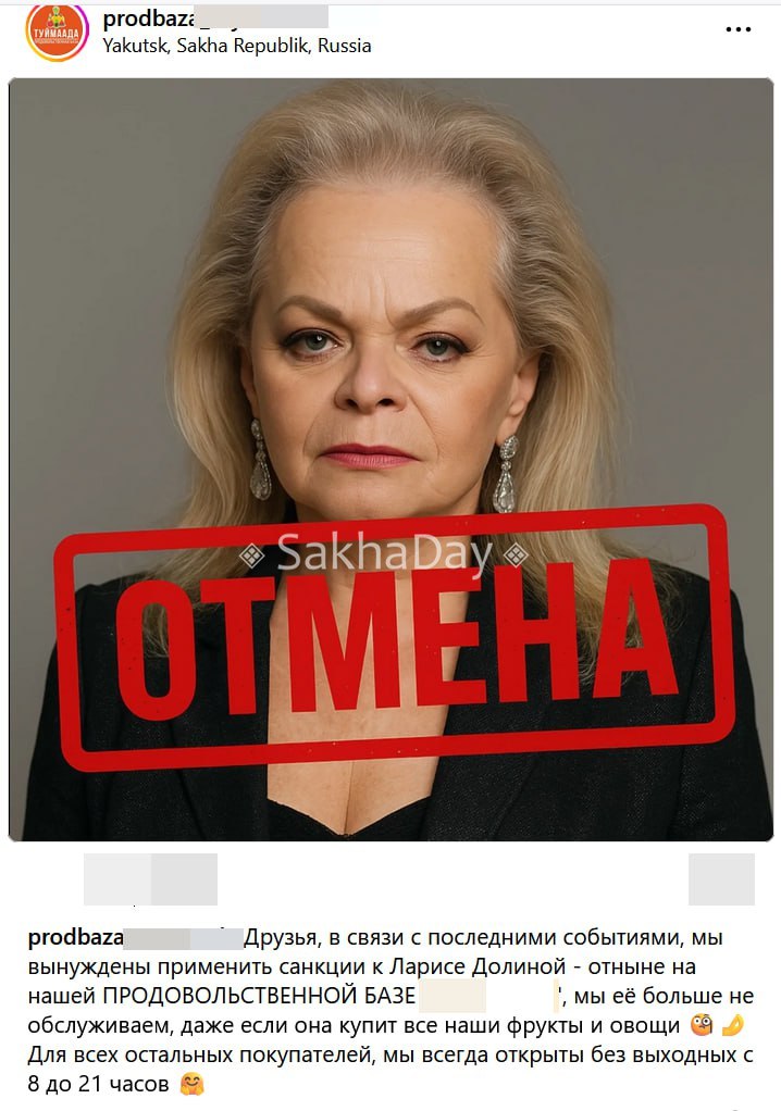 Якутяне тем временем хайпуют присоединяются к отмене народной певицы Долиной.