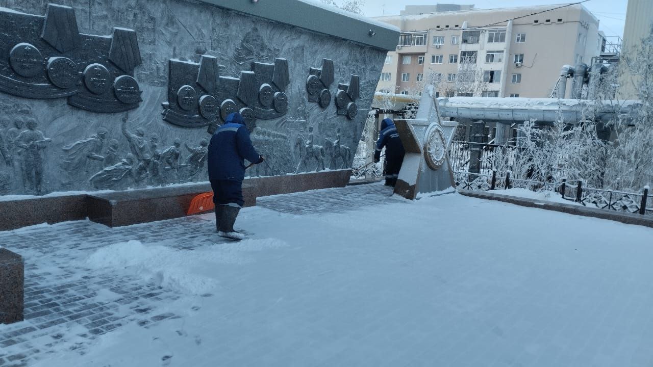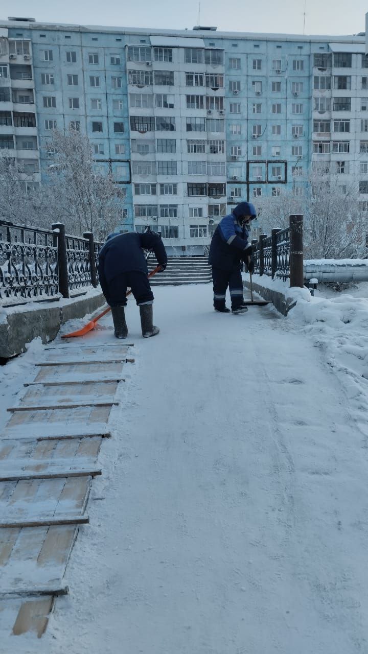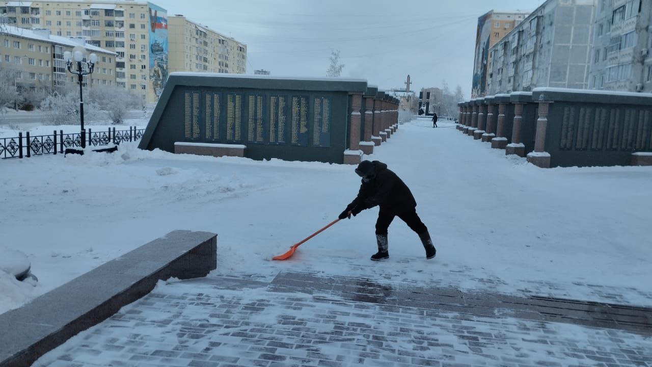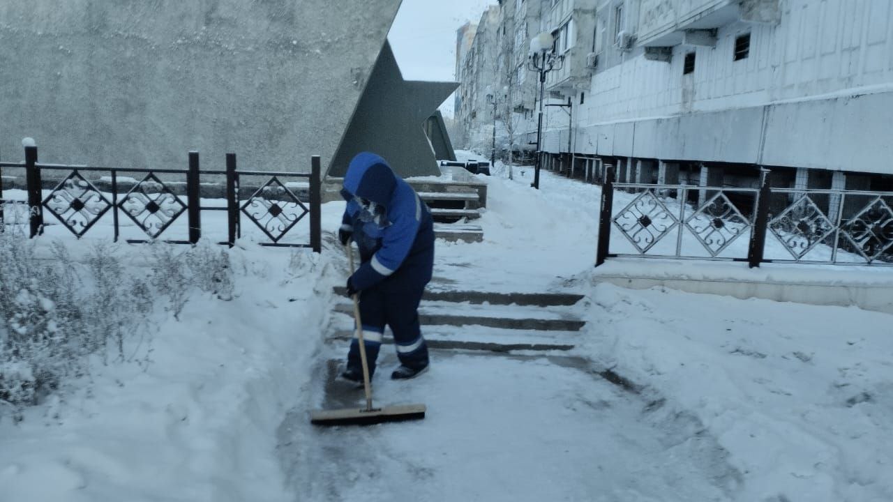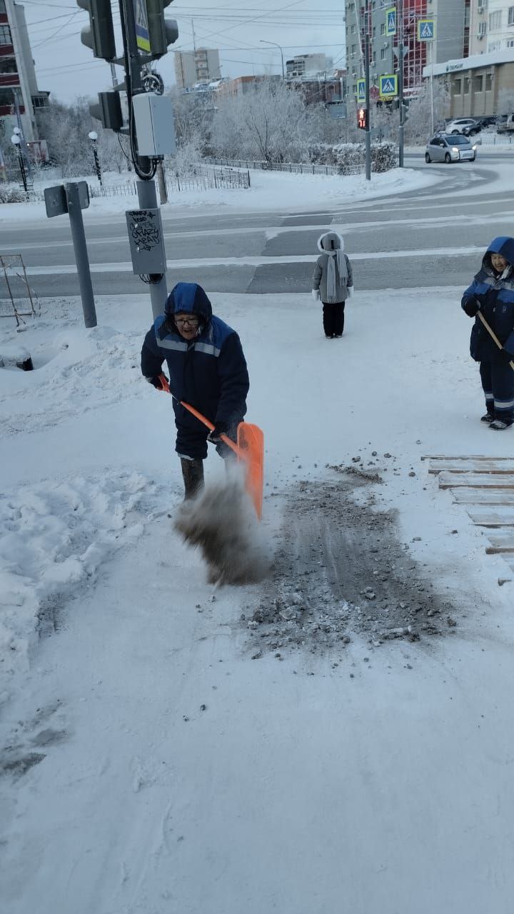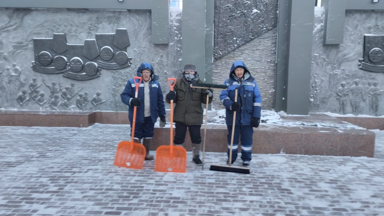 Дворники активно очищают территорию, создавая комфортные условия для жителей округа.