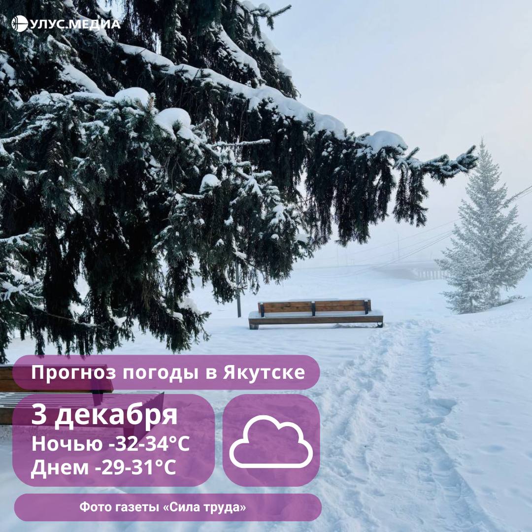 В Якутске преимущественно без осадков, ветер западный 2-7 м/с. Температура ночью -32-34°, днем -29-31°.