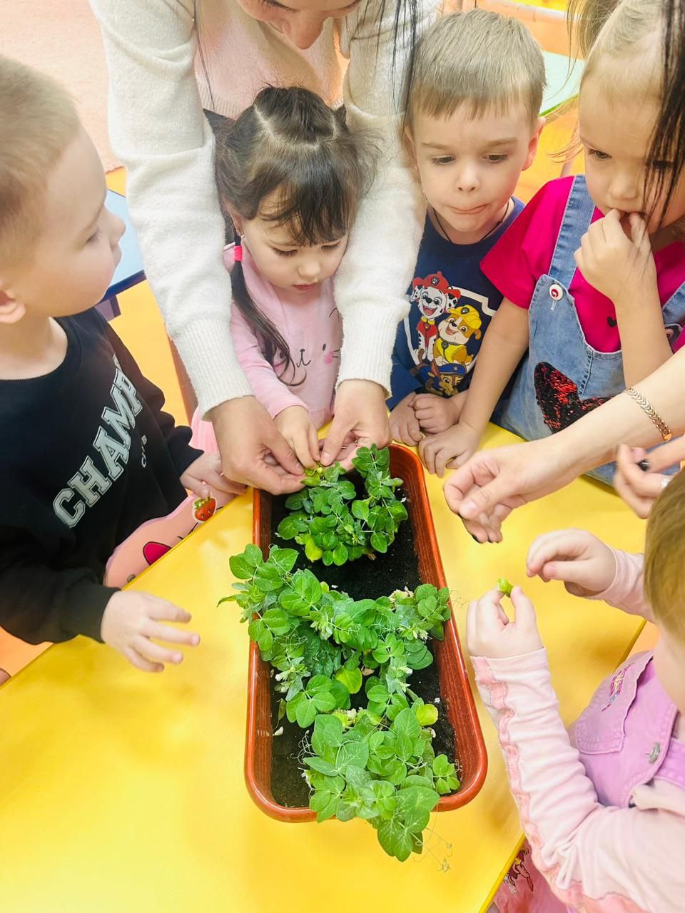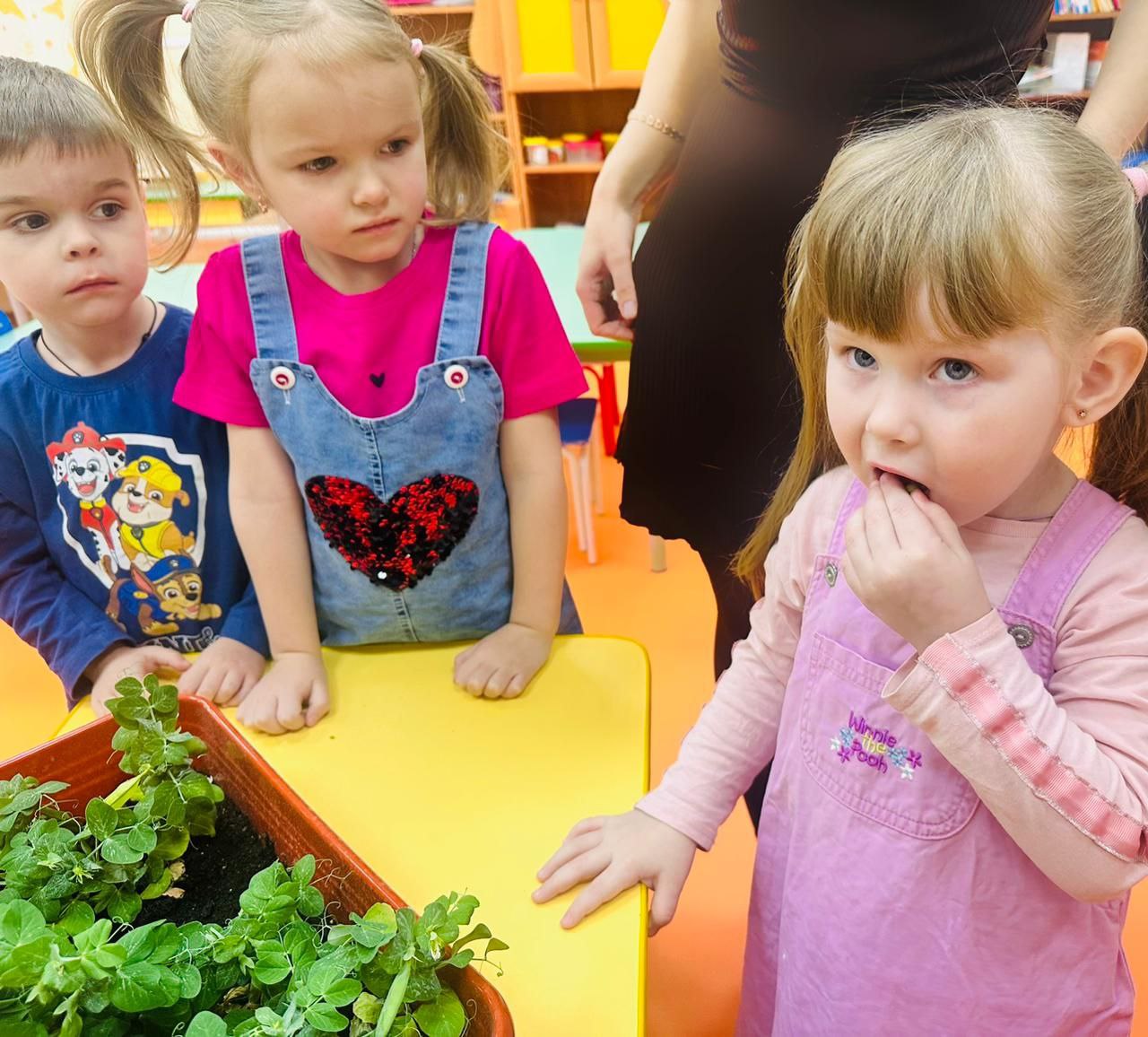 С момента открытия с 10 октября, теплицы уже принесли урожай петрушки, горошка и листьев салата, а в столовой для юных участников расширено меню, включающие результаты их труда.