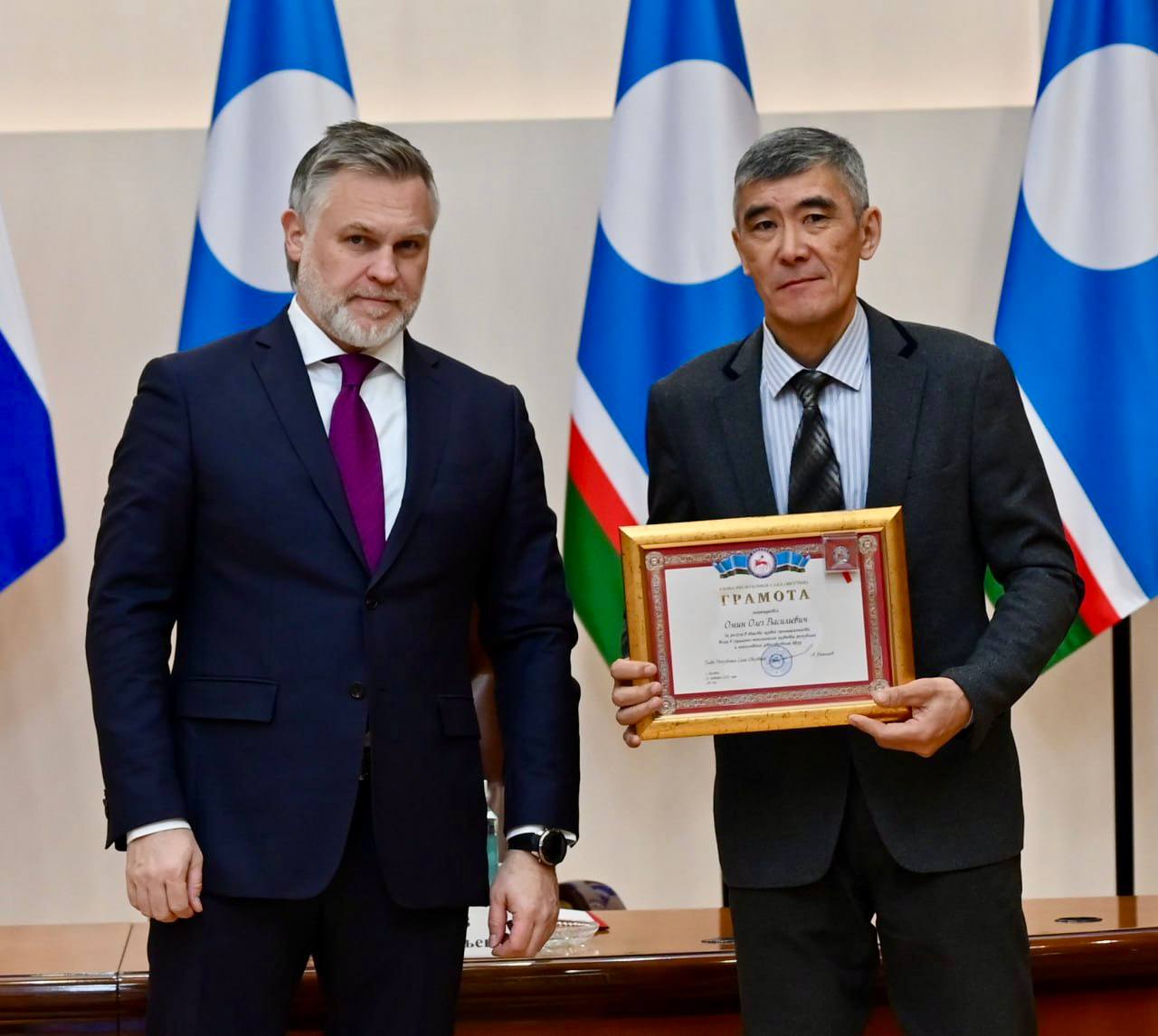 Грамота Главы Республики Саха (Якутия) вручена Олегу Омину за вклад в развитие газовой отрасли.