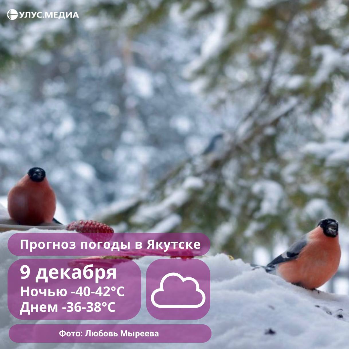 В Якутске небольшой снег, ночью, утром туман, ветер слабый, температура ночью -40-42°, днем -36-38°.