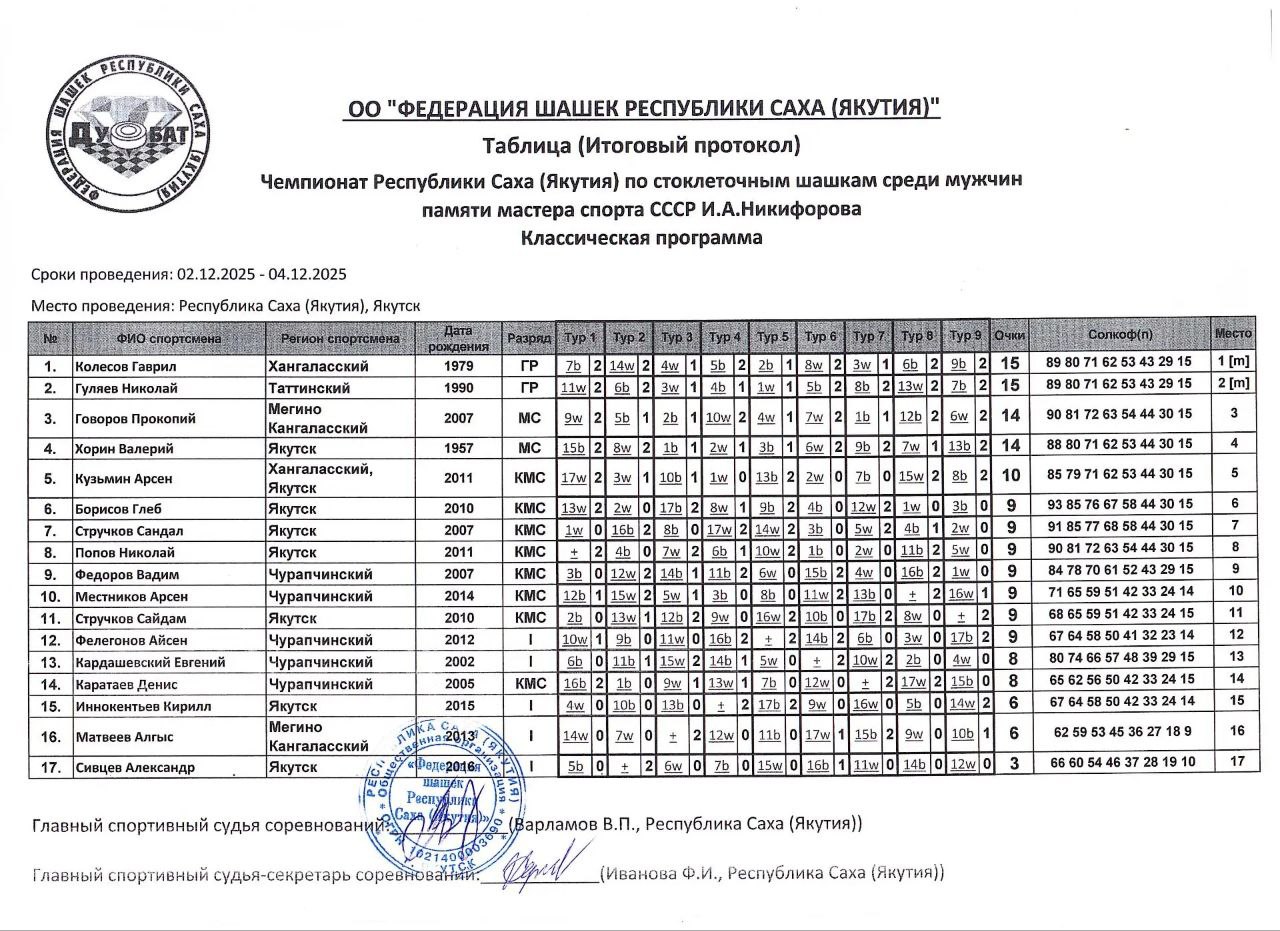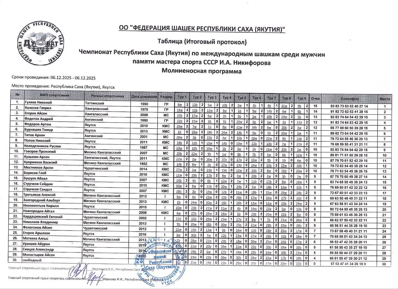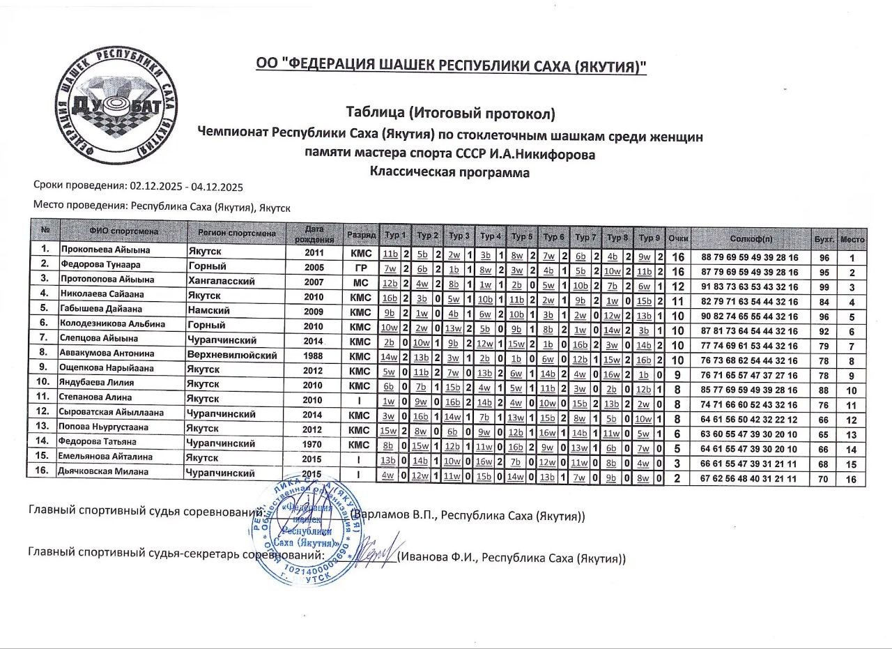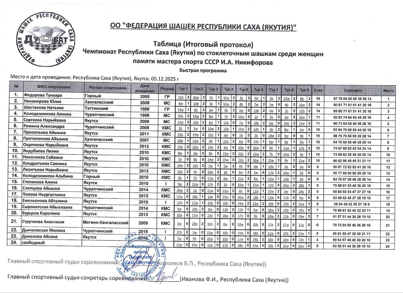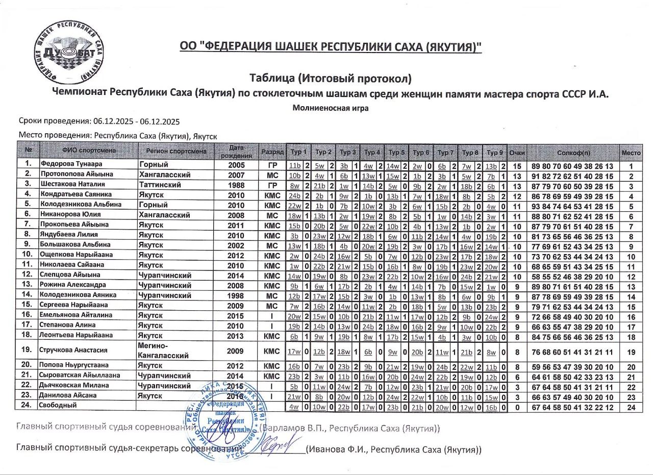 Рады сообщить: итоговые таблицы всех программ Чемпионата Республики Саха (Якутия) по стоклеточным шашкам теперь доступны в официальном виде!
