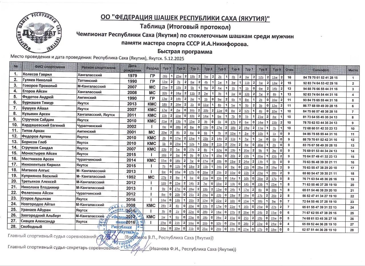 ОФИЦИАЛЬНЫЕ ИТОГОВЫЕ ТАБЛИЦЫ ЧЕМПИОНАТА РС(Я) ПО СТОКЛЕТОЧНЫМ ШАШКАМ!