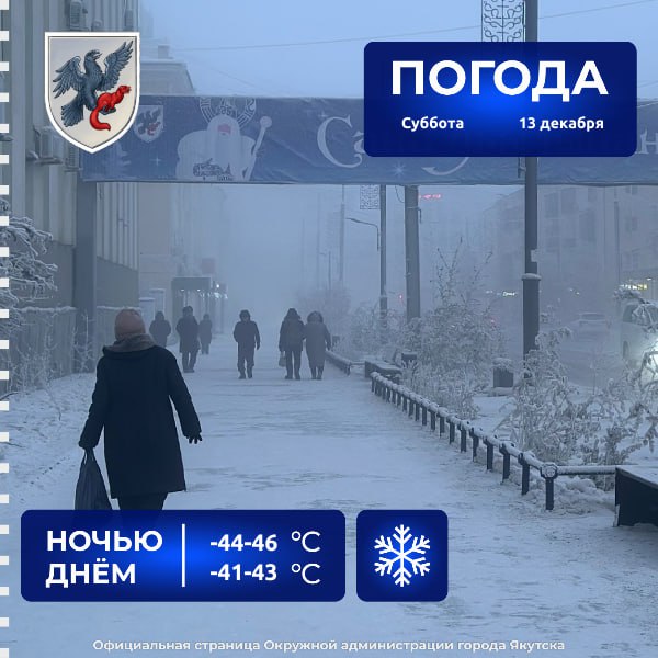 Температура воздуха ночью -44-46°, днём -41-43°.