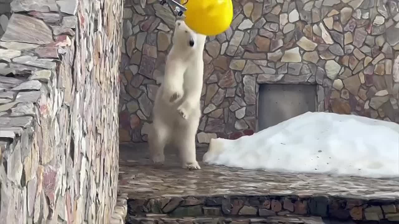 Сотрудники зоопарка поделились кадрами, на которых она играет с новой игрушкой: желтым спасательным кругом.