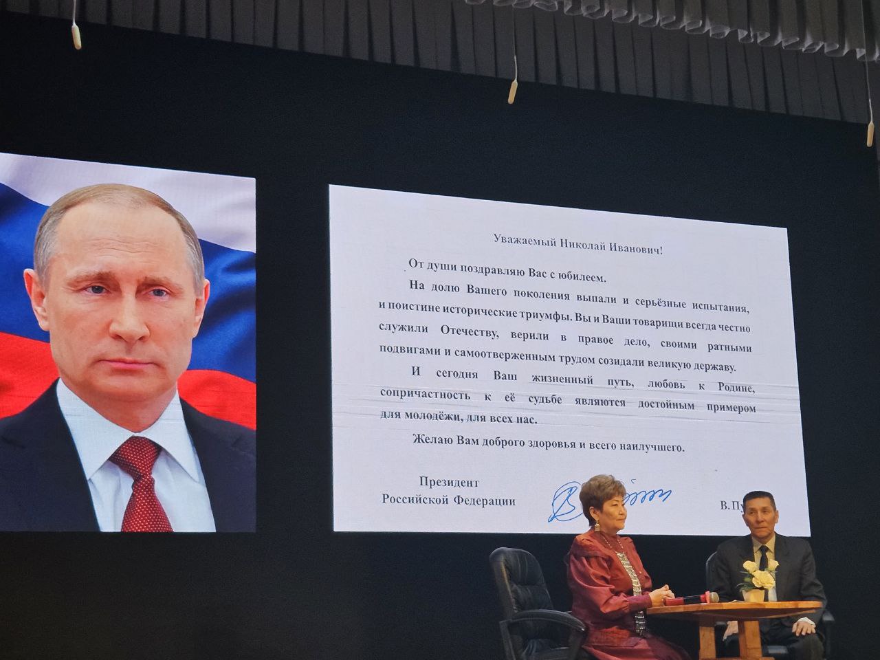 Поздравление ветерану направил президент Российской Федерации Владимир Владимирович Путин, который отметил: Ваш жизненный путь, любовь к Родине, сопричастность к ее судьбе являются достойным примером для молодежи, для всех нас. Искренния слова ппризнательности юбиляру направил Глава республики Айсен Николаев. Руководитель администрации Главы и Правительства РС(Я) Георгий Михайлов от имени Ил Дархана и Правительства республики передал почетный знак долгожителя Республики Саха (Якутия) йэ саас лично Николаю Ивановичу у него дома.Также был вручен нагрудный знак За вклад в экологическое просвещение от Министерсва экологии, природопользования и лесного хозяйства РС(Я). К поздравлениям присоединились первый заместитель министра образования и науки РС(Я) Нюргун Павлов, глава улуса Сергей Винокуров, председатель районного Совета Депутатов Гаврил Корякин и главы наслегов Вилюйского района. Глава улуса передал сертификат на 500 тысяч рублей на издание книги Николая Ивановича.