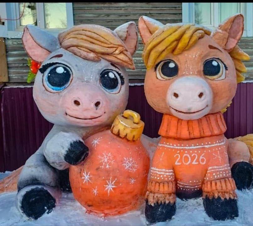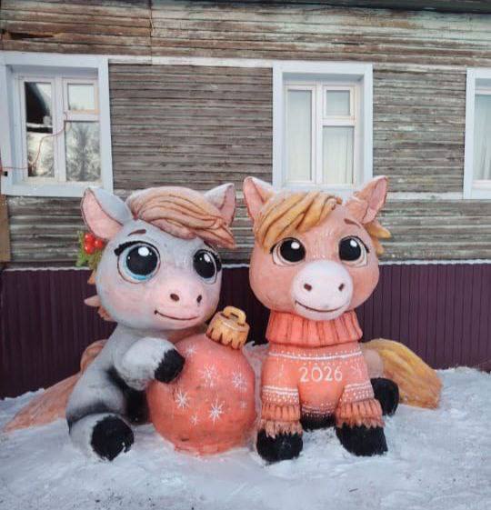 Снежные символы наступающего года для детей и взрослых своими руками создал местный умелец Василий Габышев, передает @tompovestnik.