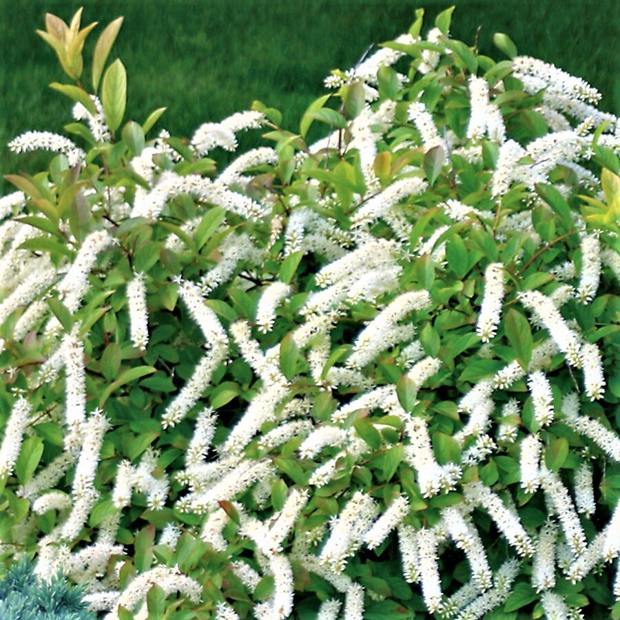 Летом это растение становится настоящей звездой благодаря своим роскошным белым колосовидным соцветиям, которые появляются в июле. Данные соцветия достигают длины 15 см и свисают с концов ветвей, создавая визуальный эффект каскада. Такое цветение продолжается до 50 дней и привлекает множество бабочек своим нежным ароматом.