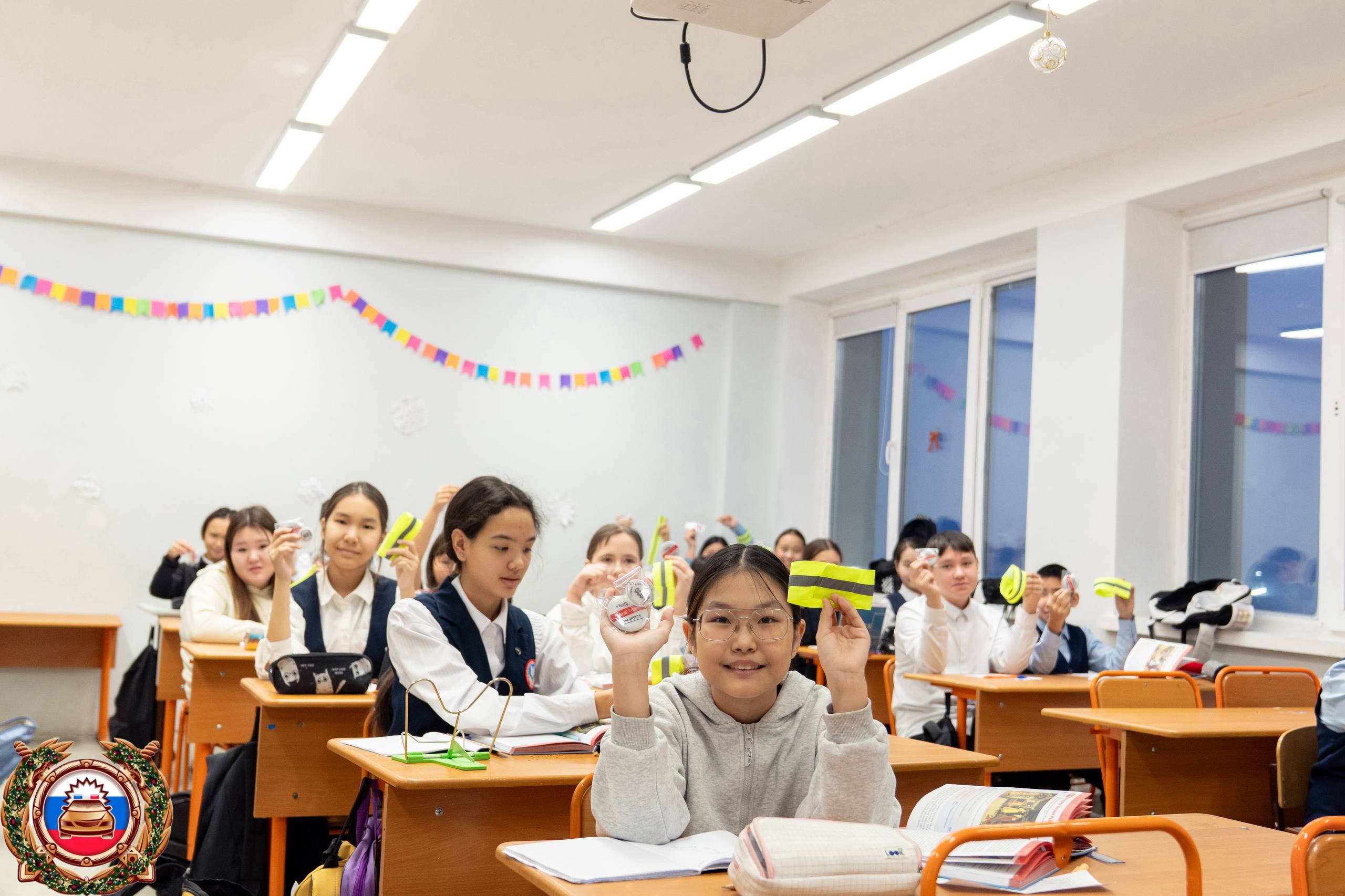 Каждый ученик получил комплект световозвращающих элементов: ремешок, брелок и значок. Эти аксессуары сделают детей более заметными на дороге.
