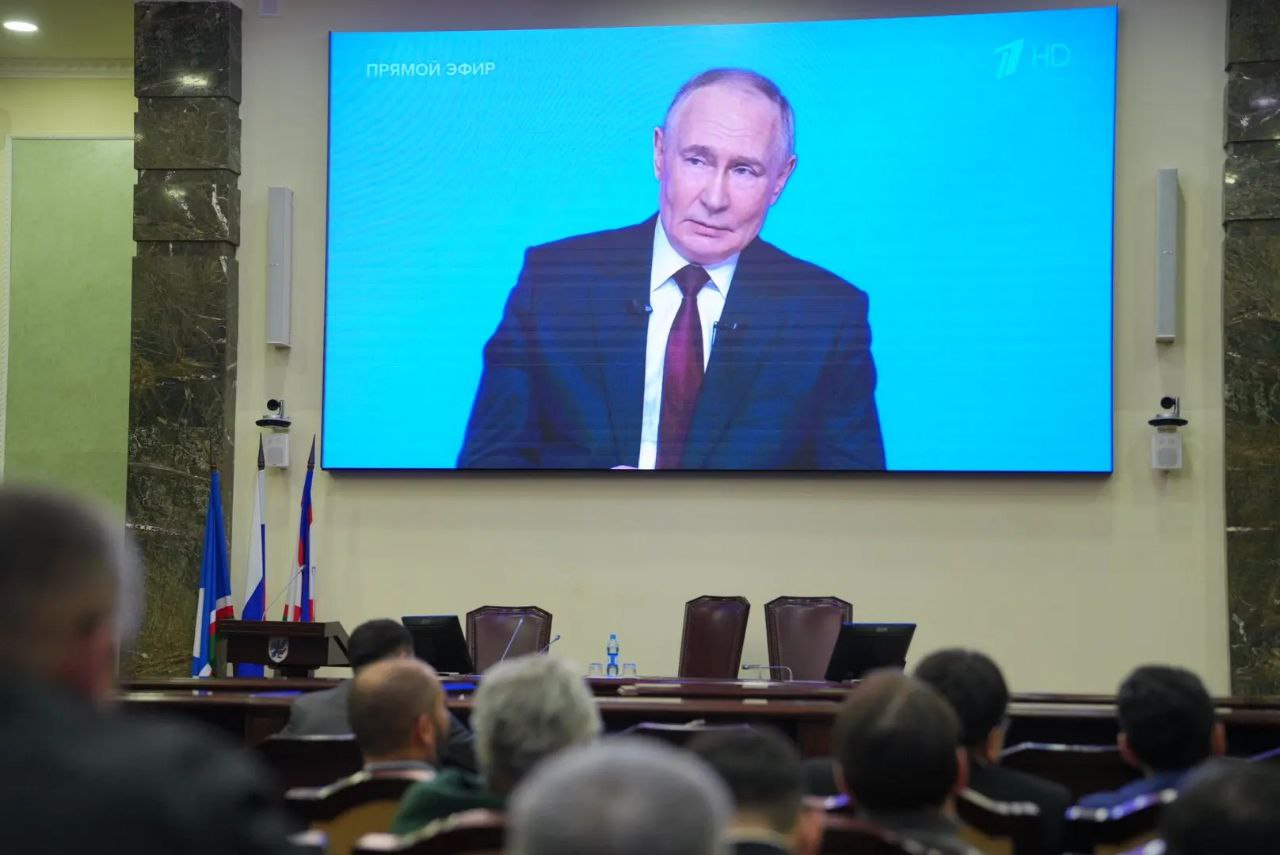 По сложившейся в последние годы традиции, вместе с коллегами, заместителями главы, руководителями структурных подразделений смотрим «Прямую линию» Президента России Владимира Владимировича Путина.