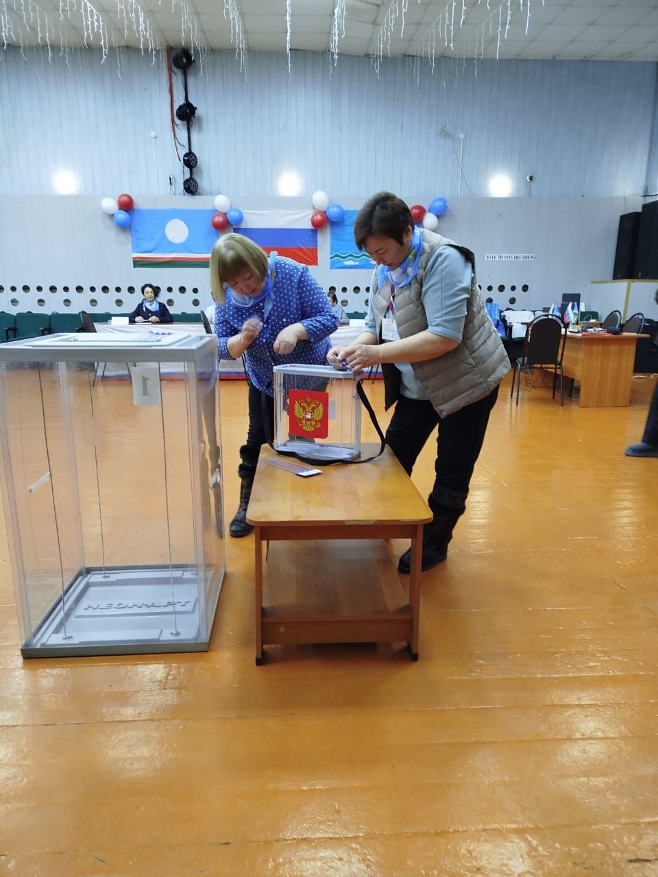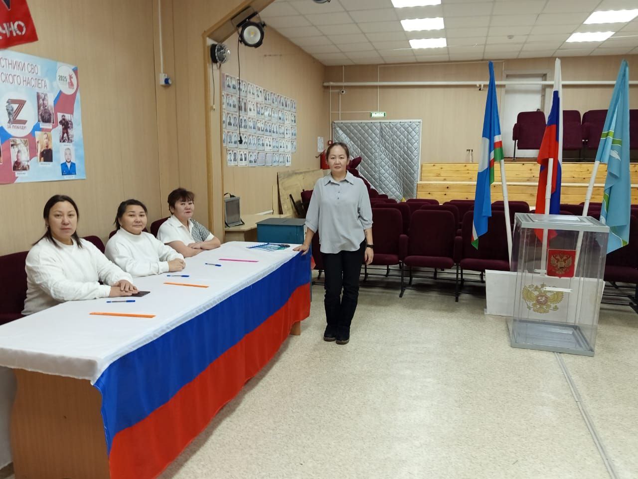 На посту сегодня в этот день голосования наши члены Абыйской ТИК под председательством Новиковой Елены Петровны и члены всех шести участковых избирательных комиссий.
