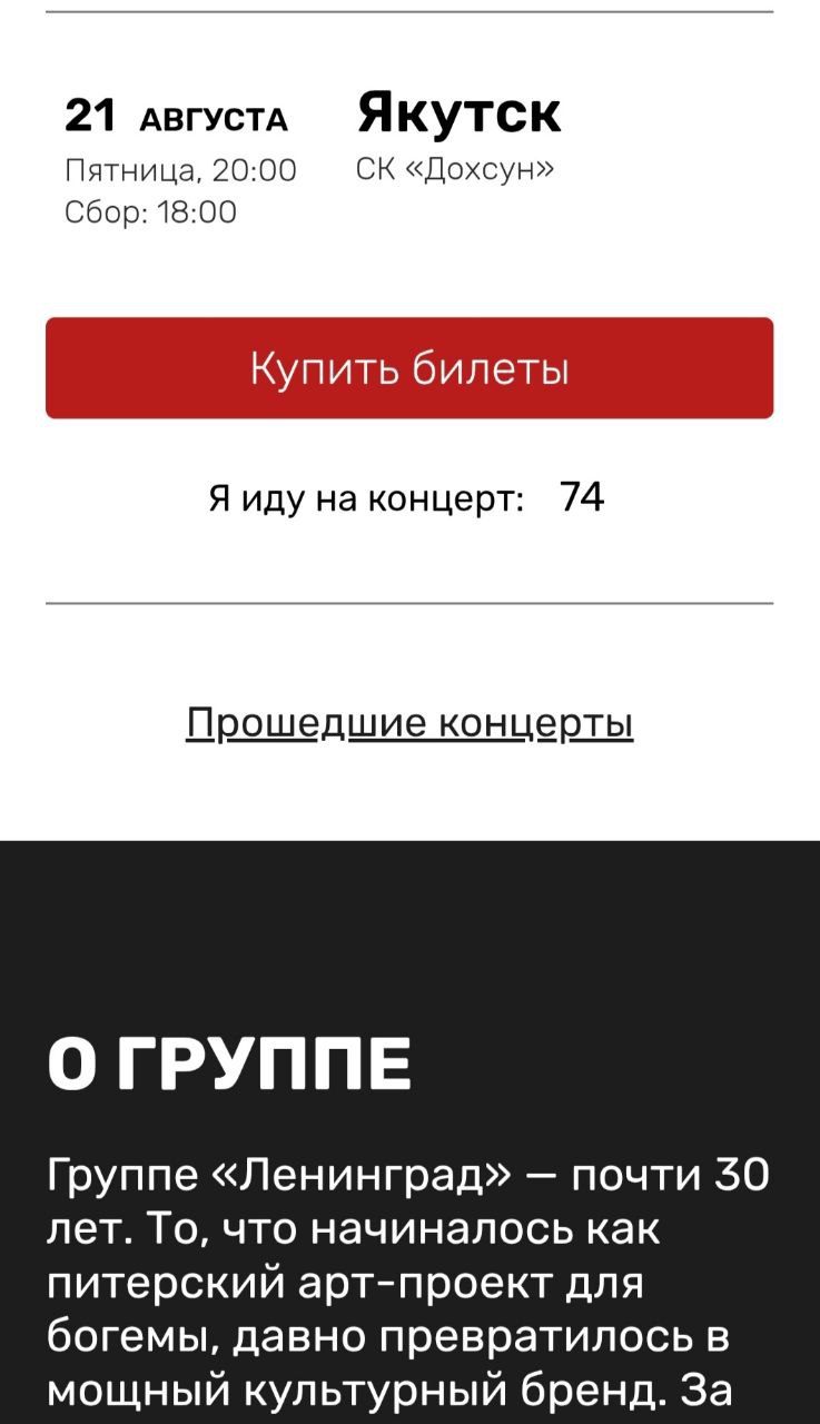 Группа «Ленинград» намеревается выступить в Якутске в августе 2026 года. Город Якутск включен в график концертных туров на официальном сайте коллектива.