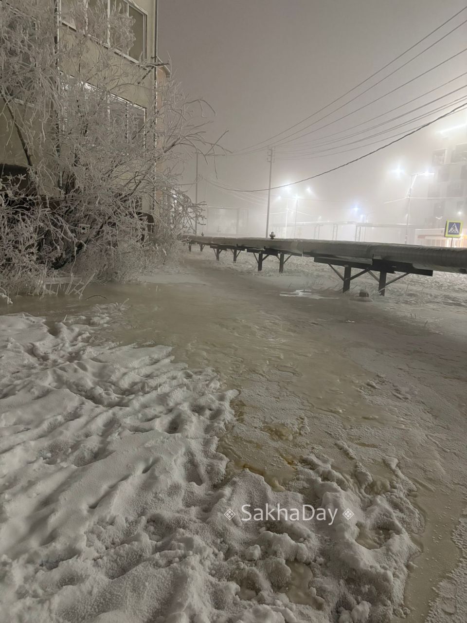 Здравствуйте, рядом с домом Ильинка 2 где-то труба протекает. По фото видно, что вода ещё не замерзла, прошу проверить. @sakhaday
