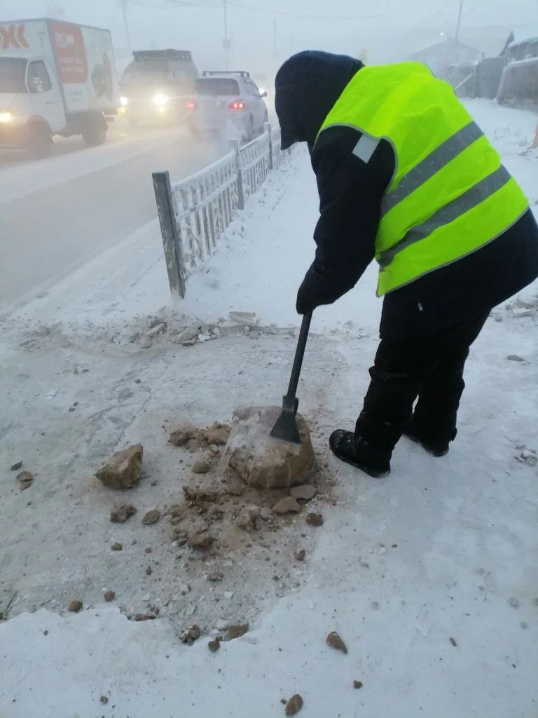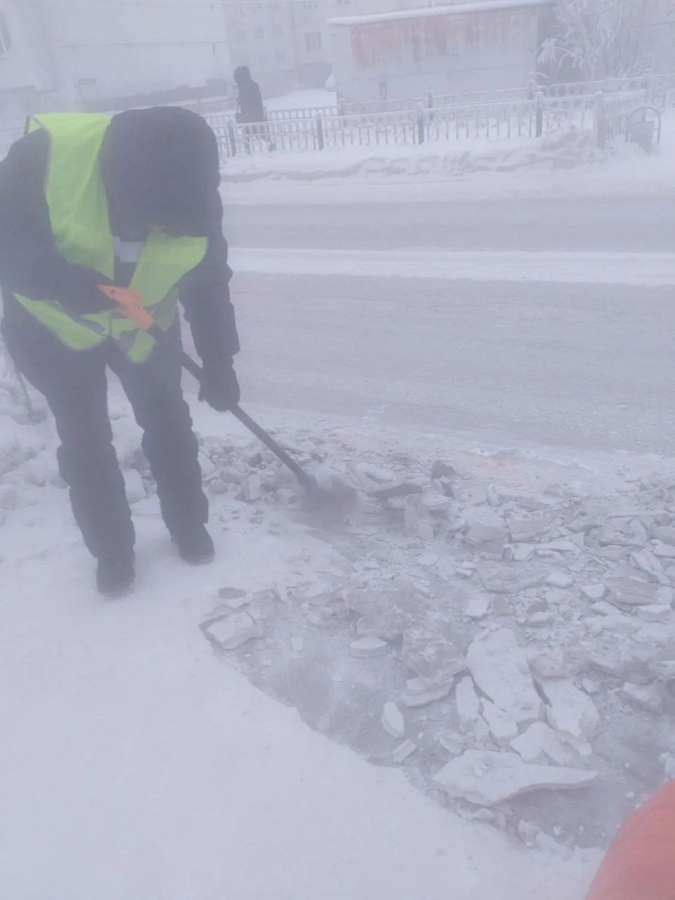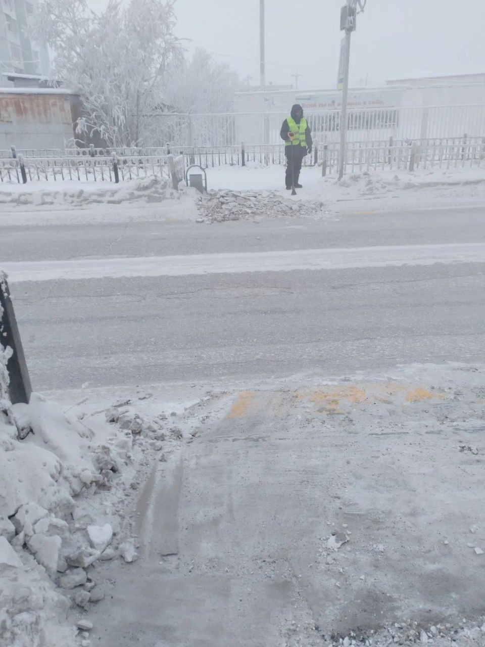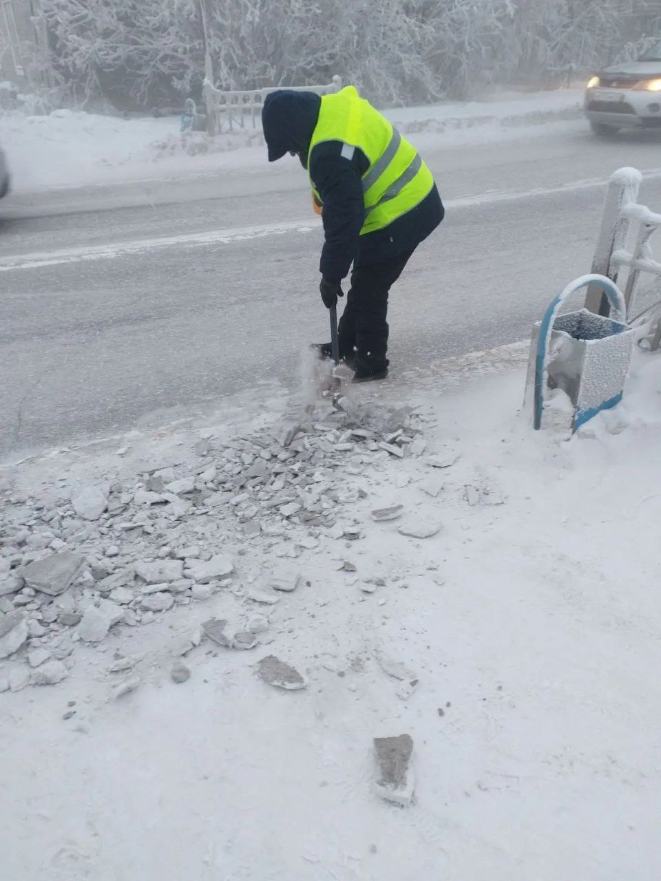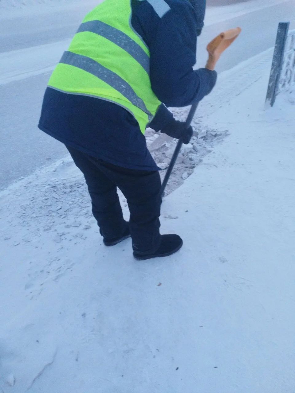 Дворники регулярно выполняют очистку тротуаров и пешеходных переходов от снега и наледи, а также проводят антигололедные мероприятия на территории округа.