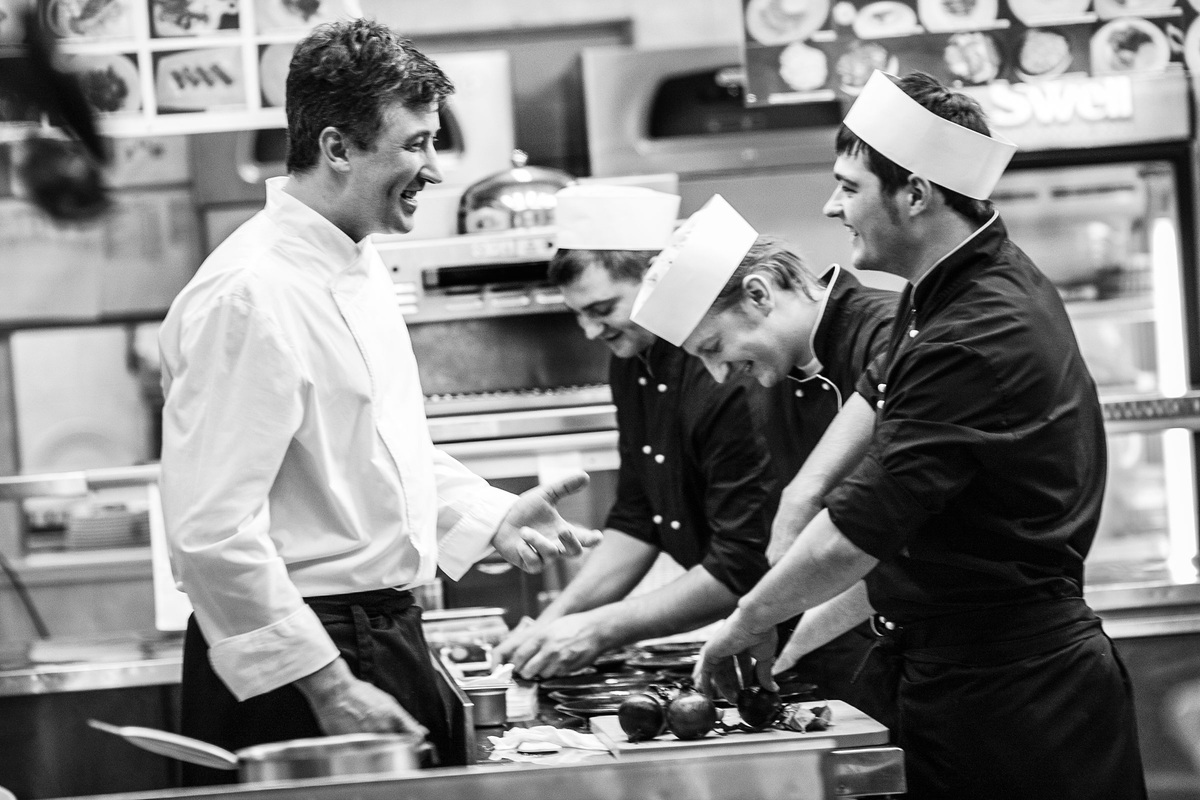 - Ресторанная обстановка с блюдами, которые презентует шеф.