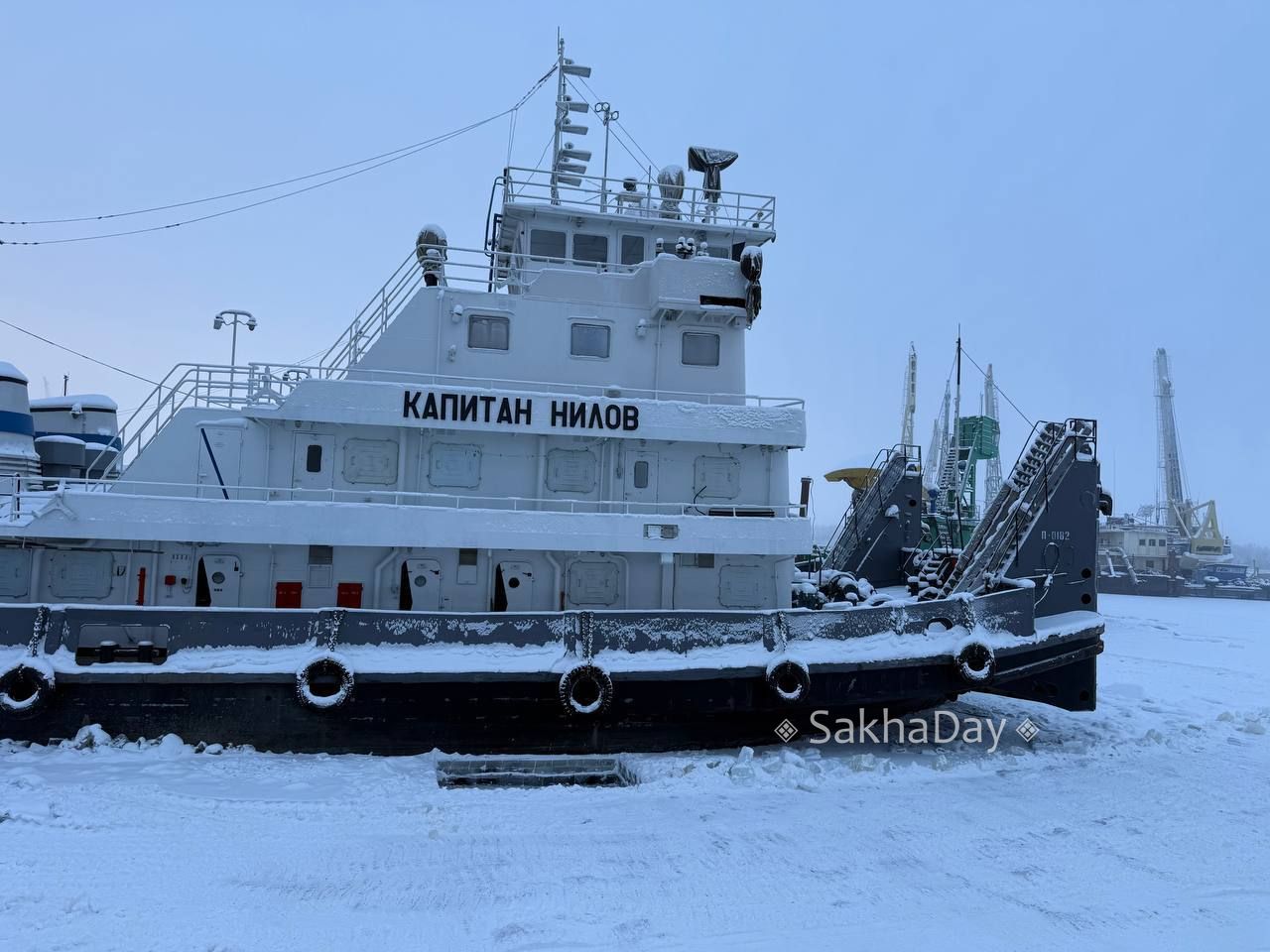 Выморозка судов в речпорту. Тяжелая работа в суровых условиях. #дляsakhaday