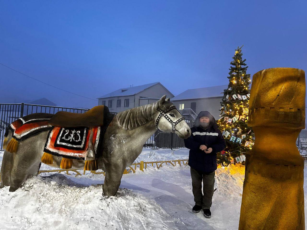 Мастер из Таттинского района Николай Степанов создал снежную фигуру якутской лошади, поразительно похожую на настоящую. Невероятная детализация и точная передача образа — кажется, ещё мгновение, и лошадка оживёт и сделает шаг вперёд.