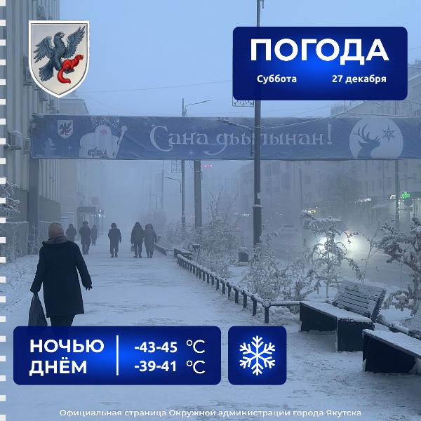 Температура воздуха ночью -43-45°, днём -39-41°.