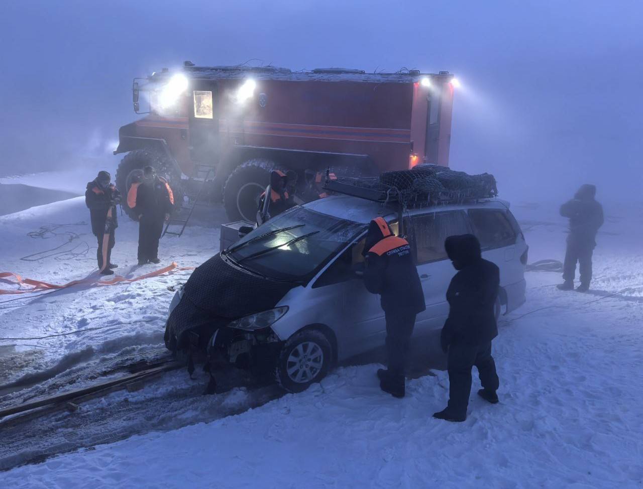 Совместная операция, проведенная спасателями Якутии и сотрудниками МЧС России, завершилась извлечением из воды затонувшего автомобиля.