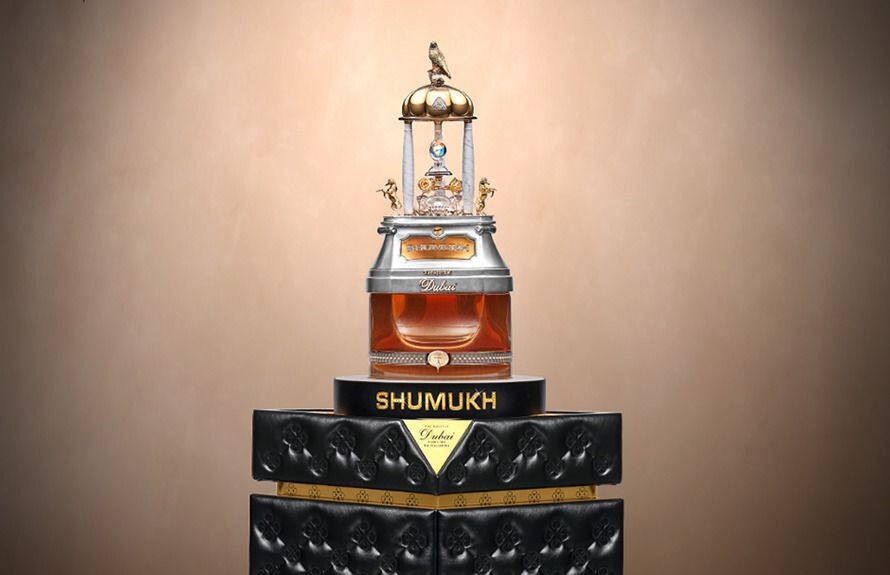 Флакон Shumukh способен поразить воображение: он украшен более 2 килограммами 18-каратного золота, 6 килограммами серебра и 3571 бриллиантом общего веса 39 карат! Дополняют эту великолепную композицию топазы и жемчуг. Неудивительно, что данный аромат попал в Книгу рекордов Гиннесса как флакон с наибольшим количеством бриллиантов.